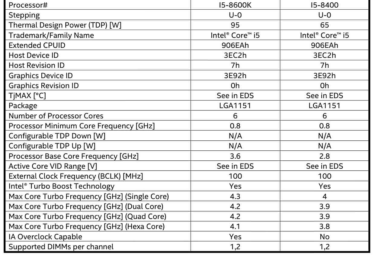 - [+] 05/10: Intel Core i7-8700K, Core i5-8600K,...