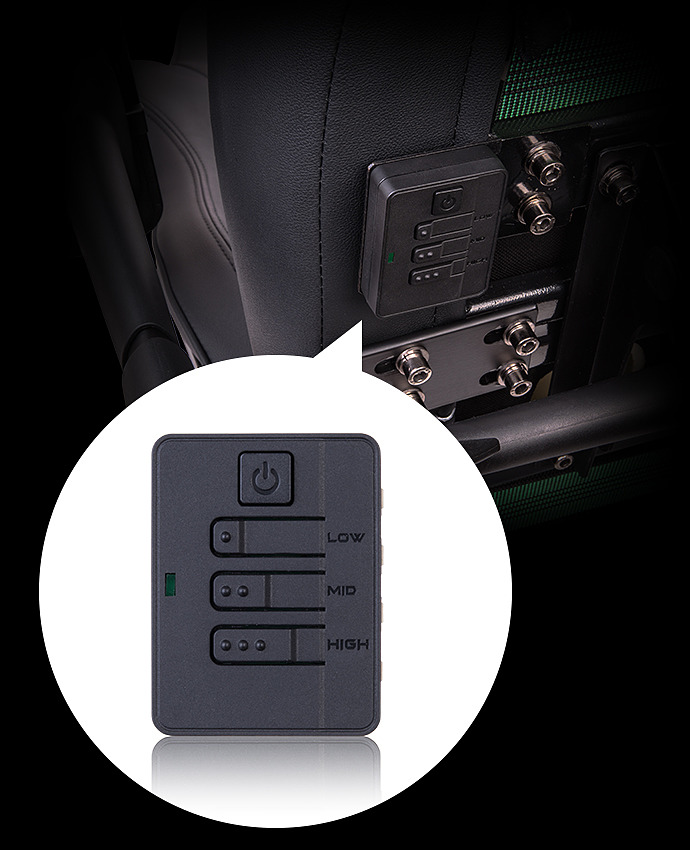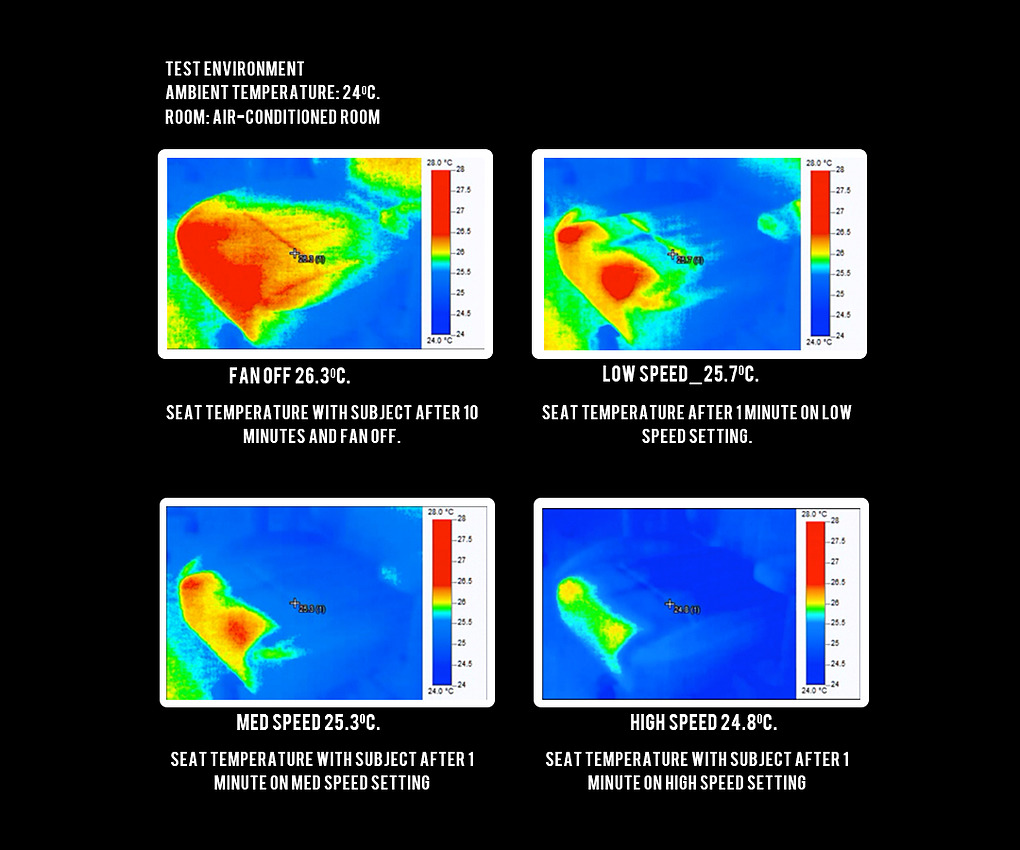 4 ventilateurs sont présent afin de garder cuisses et fessier au frais, ils peuvent être réglés à 3 vitesses : faible (1530 rpm), intermédiaire (3060 rpm) et high (5100 rpm). C'est encore insuffisant pour que la chaise décolle mais côté bruit TT évoque 32 dB, sans préciser à quelle vitesse.