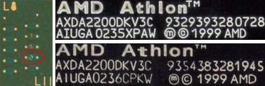 Selon x-bit , AMD aurait avertit ses distributeurs de la circulations d'Athlon XP remarqués, notamment en Europe de l'est et en Asie. Pour reconnaître ces processeurs, il faut regarder attentivement les divers ponts L3/L5/L11 pour voir si ceux-ci n'ont pas été coupés ou refermés après-coup. De plus, la présence d'un marquage de mauvaise qualité est également un indice du remarquage de ces processeurs.