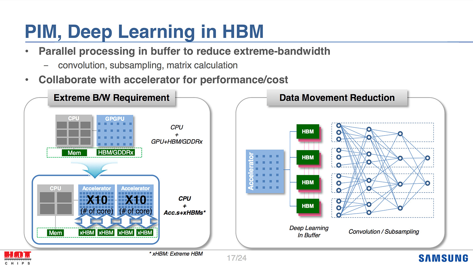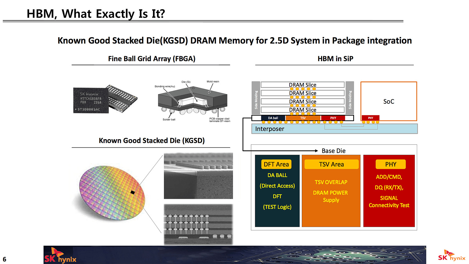 La première matinée de conférence avait lieu hier, dédiée à l'utilisation des nouvelles technologies mémoires. Chez SK Hynix et Samsung, la HBM était au programme. Pour rappel, la mémoire HBM est l'assemblage sur une même puce d'un die, en dessous, contenant les contrôleurs mémoires, et sur lequel on empile plusieurs dies de mémoire DRAM traditionnelle.