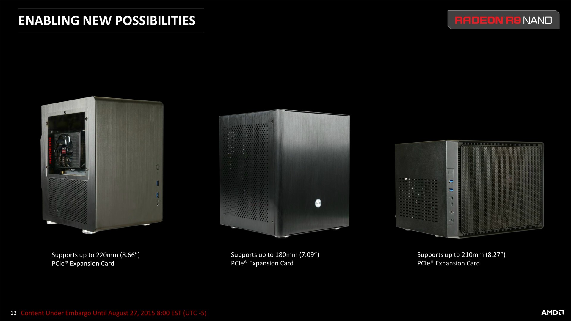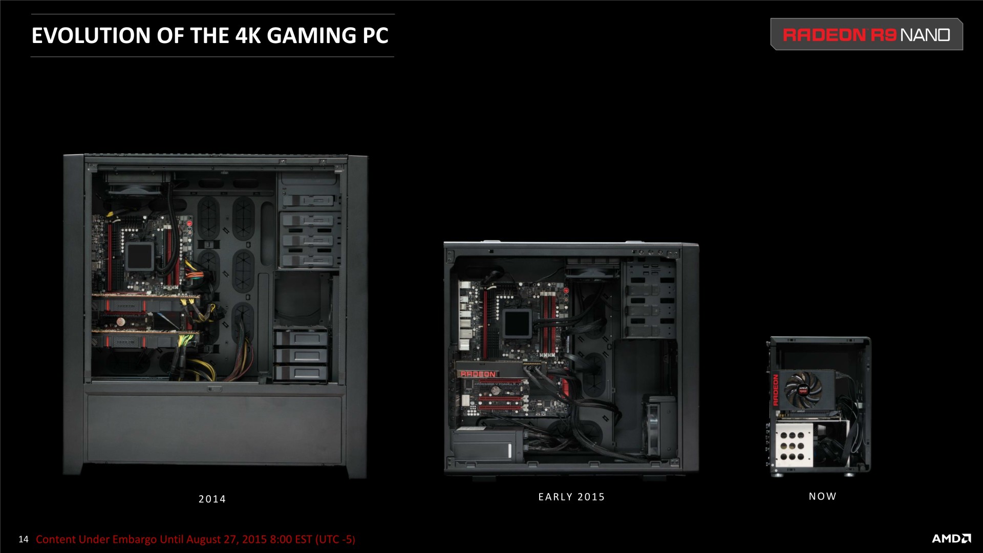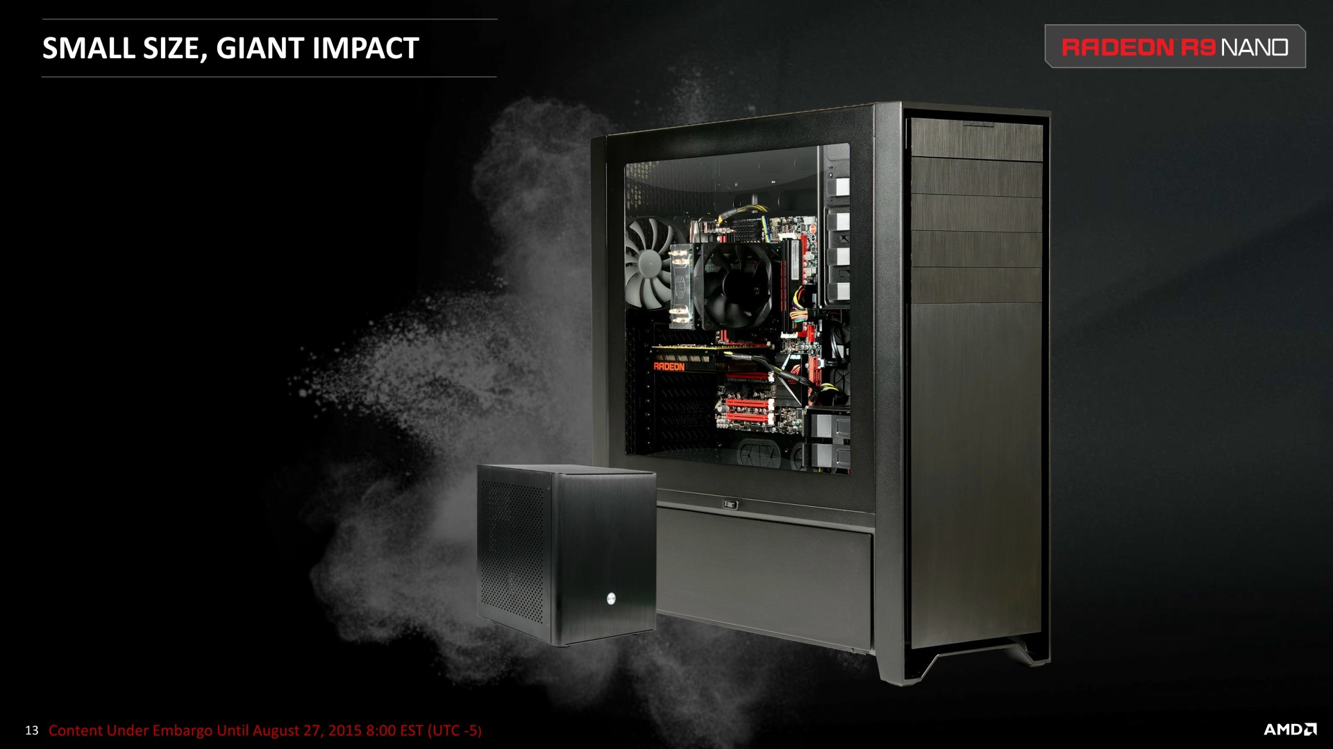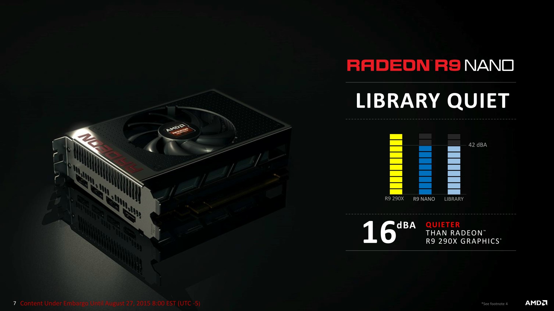 A noter qu'il ne s'agit aujourd'hui que d'une annonce, la disponibilité et les premiers tests étant prévus pour le 10 septembre. AMD estime que cette Radeon R9 Nano a autant de valeur qu'une Radeon R9 Fury X et la proposera au même tarif de 649$ soit un peu plus de 700€ en France. AMD ne recherche donc clairement pas à proposer une carte au rapport performances/prix intéressant mais essaye plutôt de créer de la valeur d'une autre manière, ce qui est loin d'être insensé. Reste à voir si une telle carte graphique pourra trouver son public et se démarquer suffisamment des solutions concurrentes qui visent également les plateformes mini-ITX, telles que les GeForce GTX 970 compactes proposées pour un tarif presque deux fois moindre.