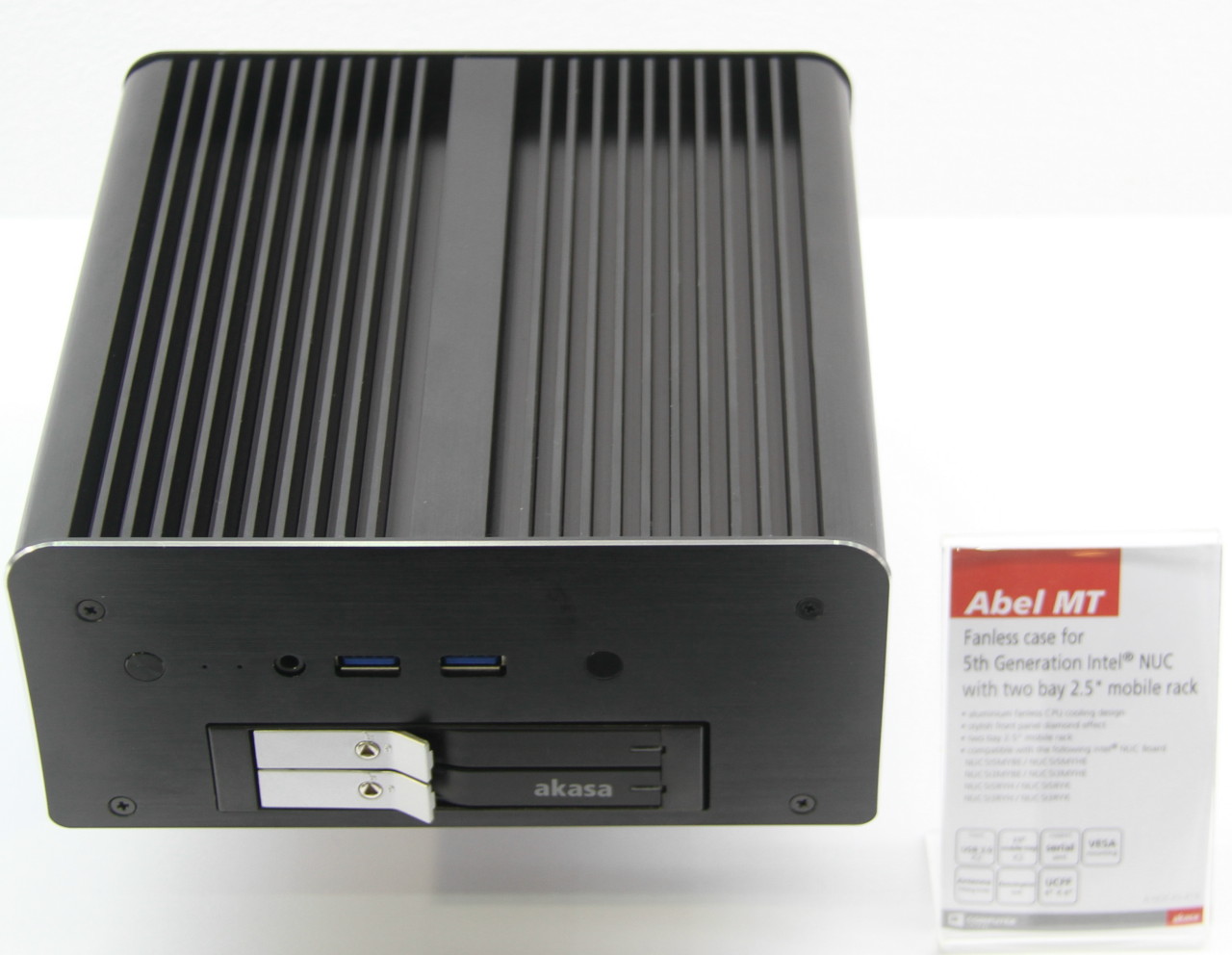 Pas de réelle nouveauté en terme de ventirads chez Akasa cette année, mais le fabricant développait par contre une autre gamme de produits : ses boîtiers-radiateurs passifs pour NUC. Les nouveaux modèles sont prévus pour les CPU Core de 5ème génération.