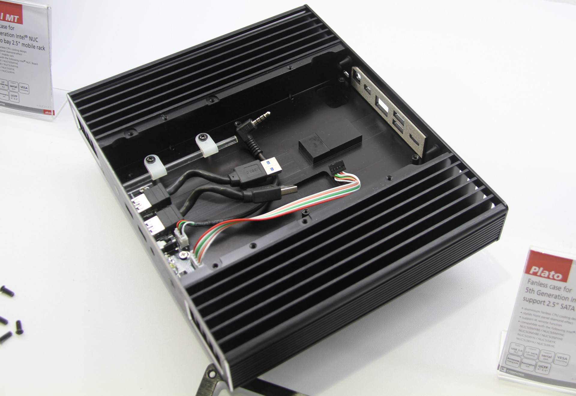 Le principe est simple, il suffit de démonter un NUC pour en récupérer la carte-mère, à moins de ne pouvoir acquérir directement que cette dernière, et de la fixer dans un de ces boitiers qui fera également office de radiateur totalement passif.