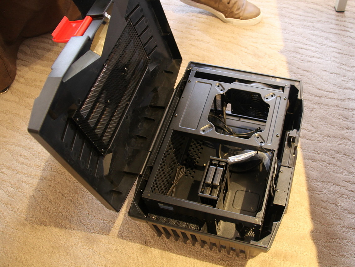 Ensuite, Xigmatek prépare un boîtier PC mini-ITX en forme de boîte à outils. Le fabricant explique qu'il a été pensé pour pouvoir déplacer facilement un système dédié à la VR et équipé d'une carte graphique performante. La VR semble être un bon prétexte pour toutes les idées farfelues…