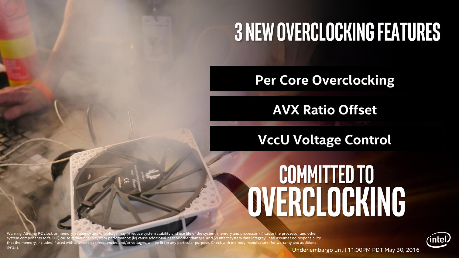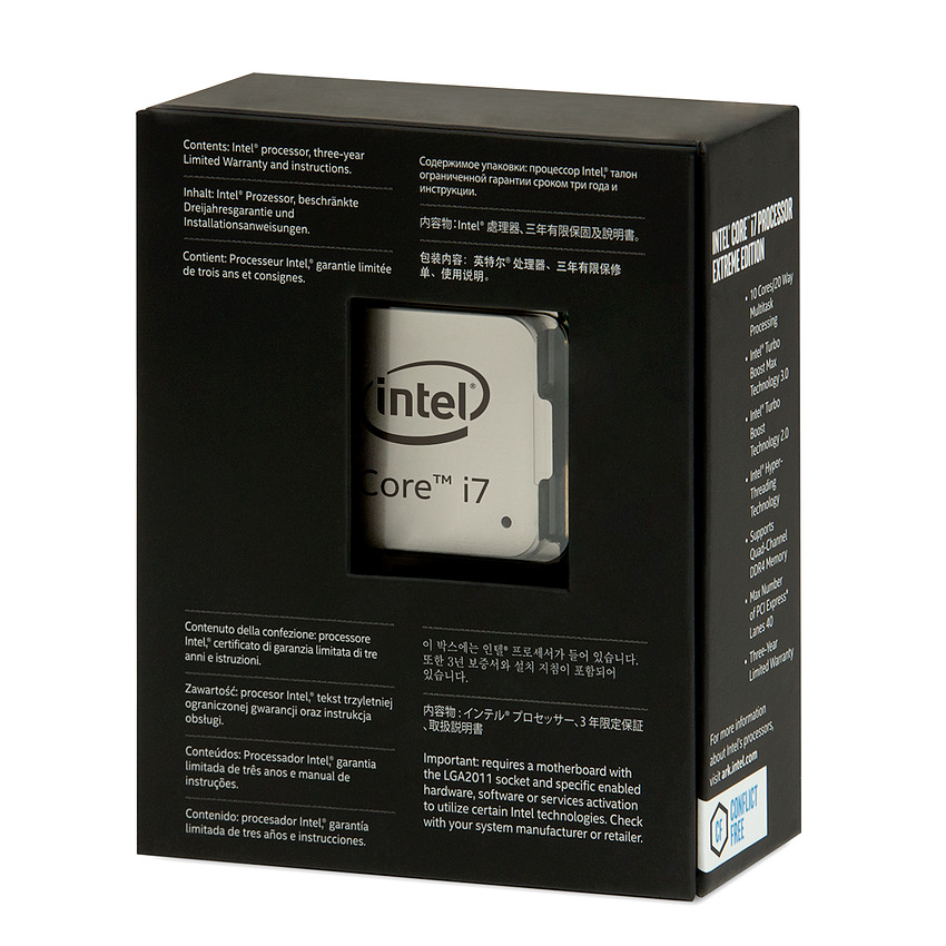 Les overclockeurs sont soignés avec quelques fonctionnalités spécifiques, il est ainsi désormais possible de faire de l'overclocking par coeur mais aussi d'appliquer un offset négatif pour les charges AVX, afin par exemple d'être à 4.0 GHz sans AVX et 3.8 GHz avec. Intel reprend probablement pour un usage différent le Turbo des Xeon qui différenciait déjà le type de charge. C'est un détail mais on appréciera également une légèrement modification de l'IHS améliorant la prise entre les doigts, de quoi rassurer les 2011 pins du Socket quant elles voient le processeur en approche.