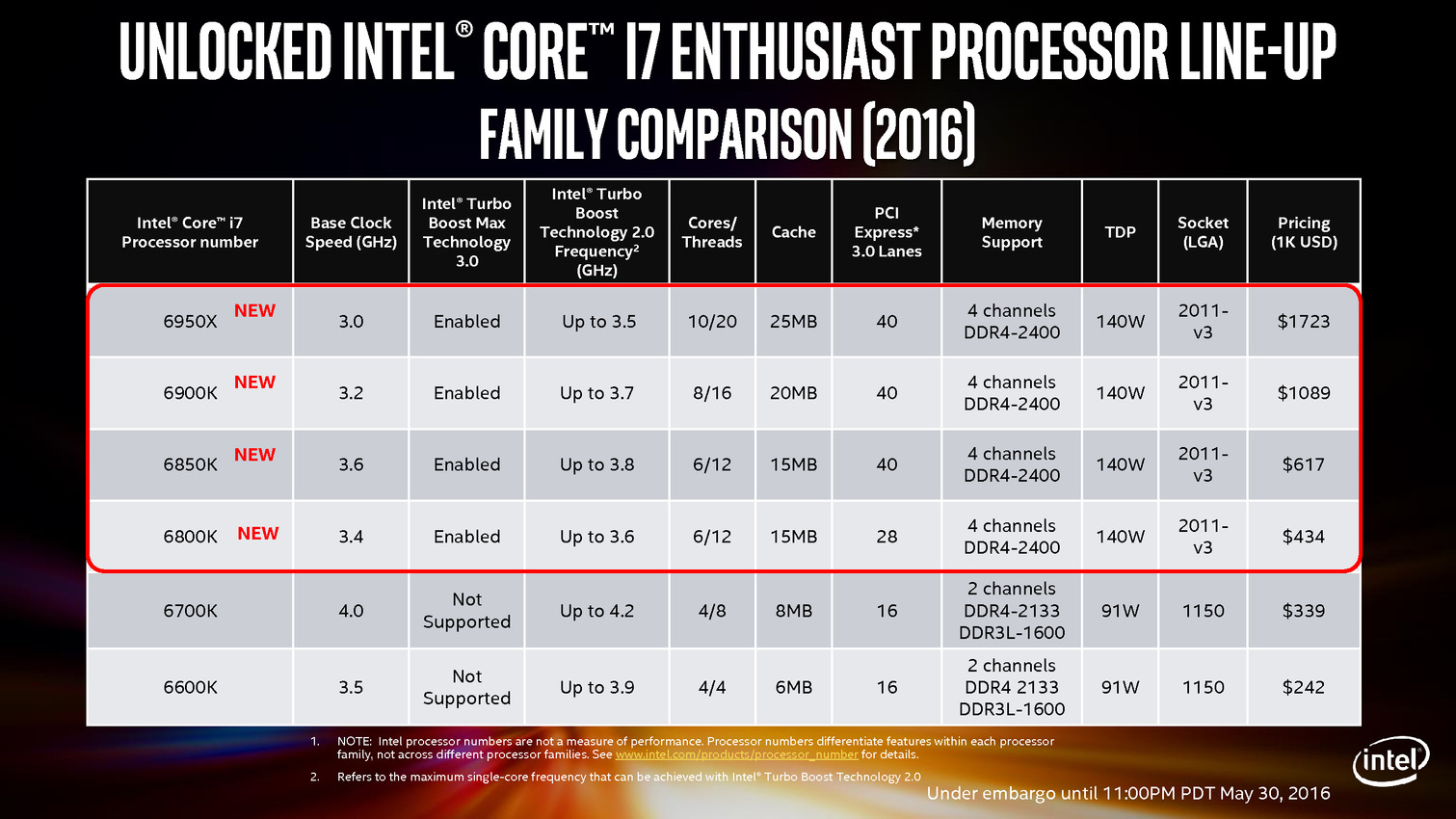 Intel lance les i7 BDW-E, i7-6950X en tête