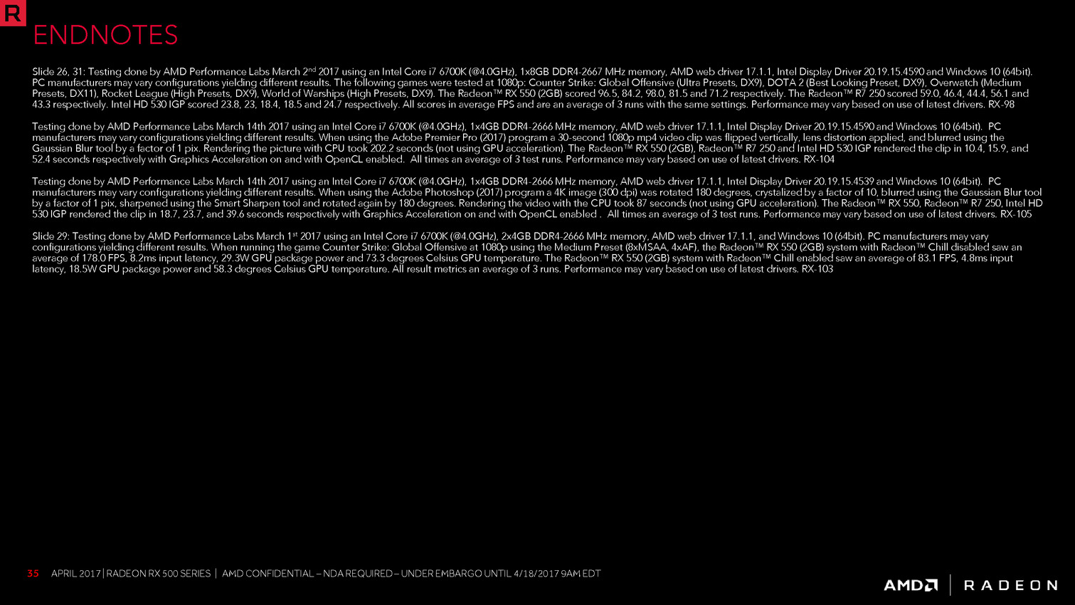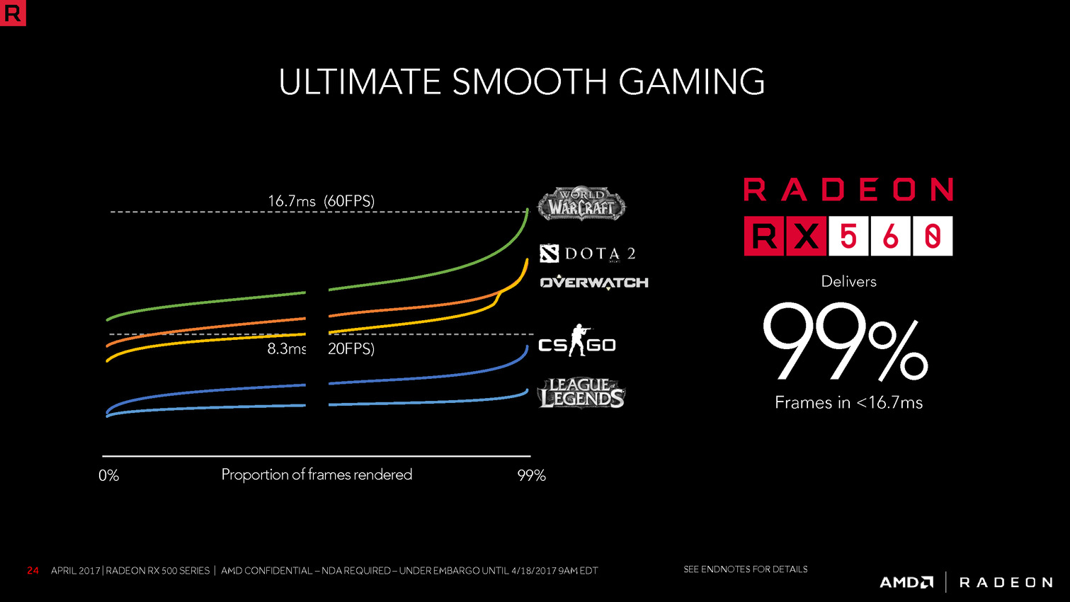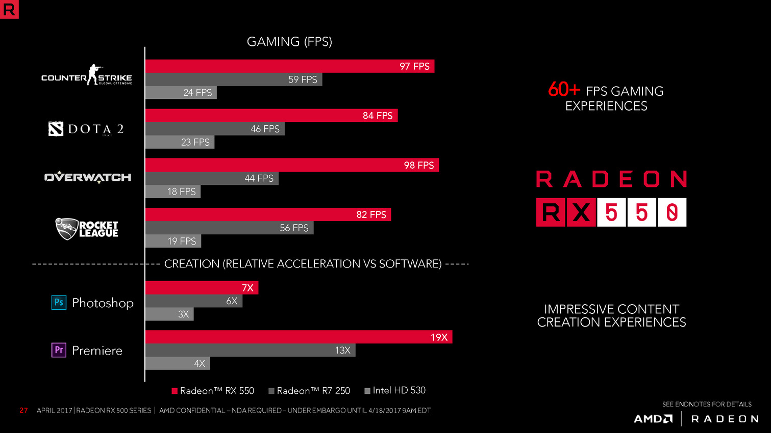 AMD annonce ensuite les Radeon RX 560 et RX 550. La première est prévue pour début mai alors que la seconde sera lancée fin de semaine :