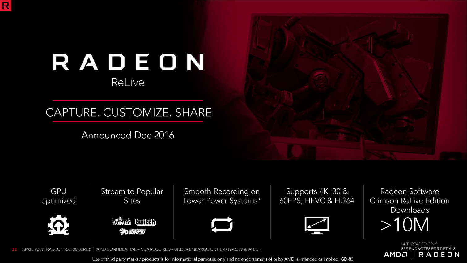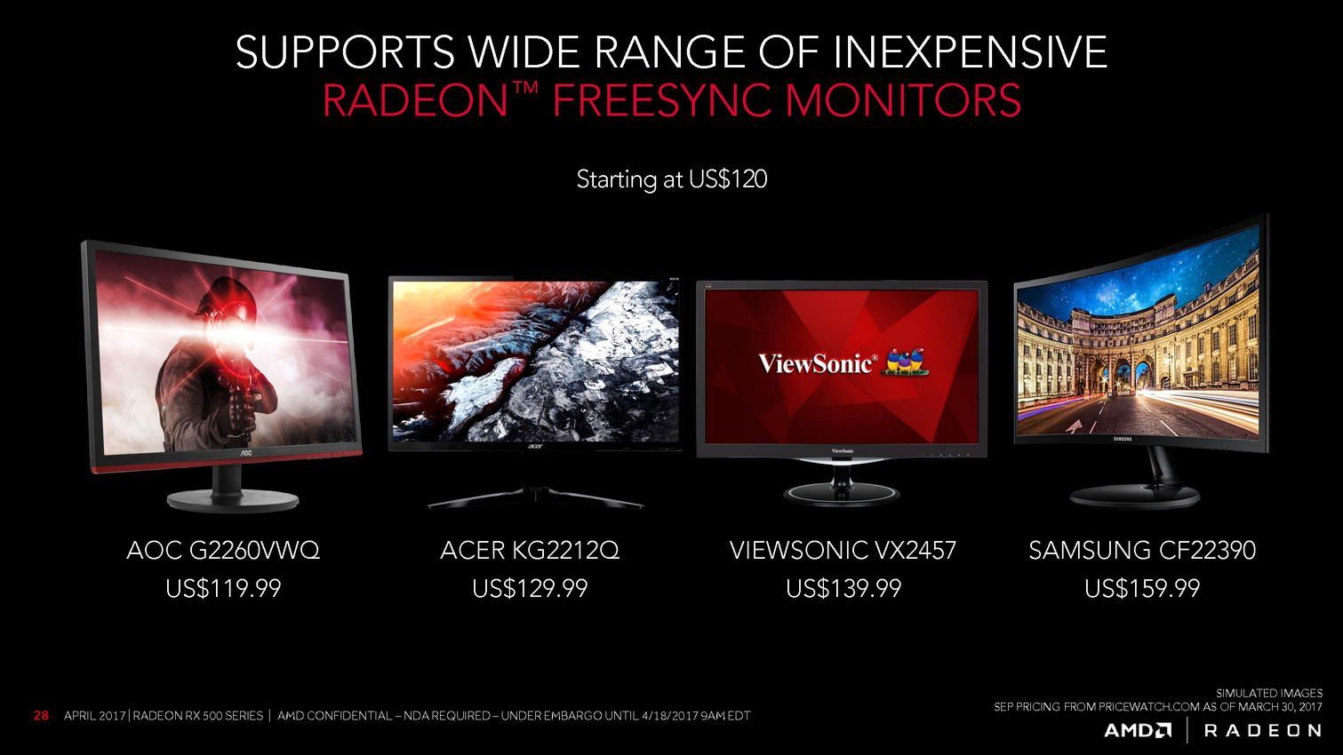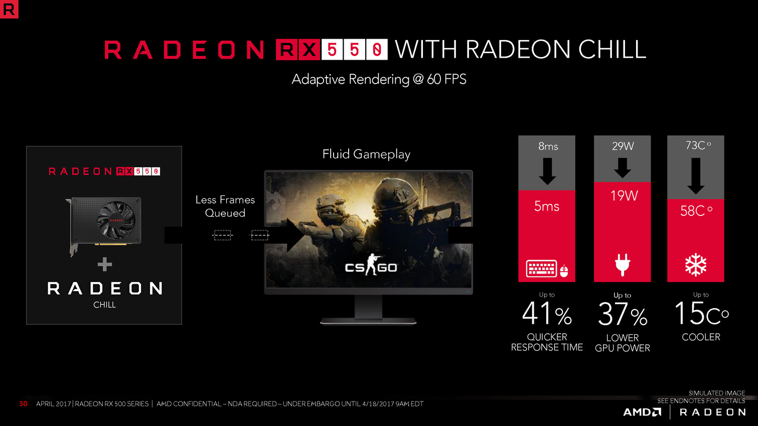 AMD annonce ensuite les Radeon RX 560 et RX 550. La première est prévue pour début mai alors que la seconde sera lancée fin de semaine :