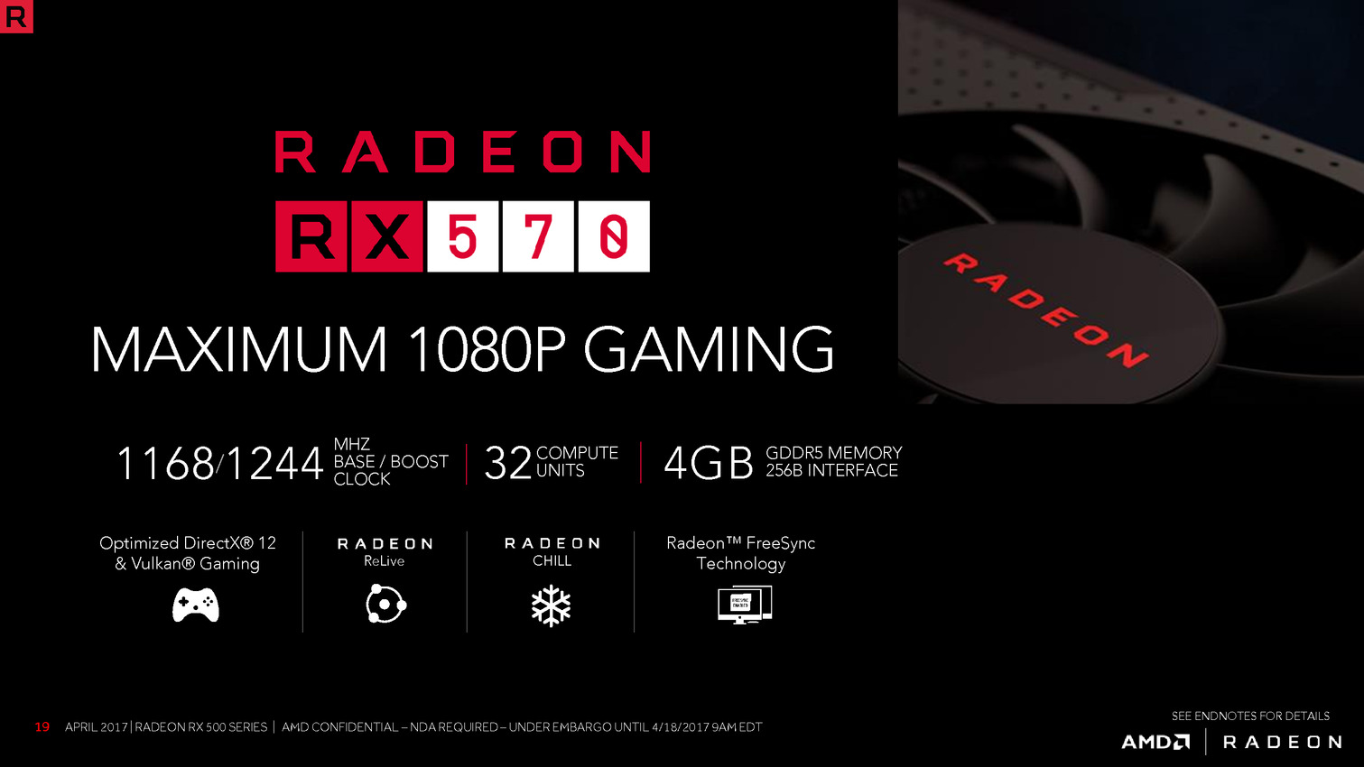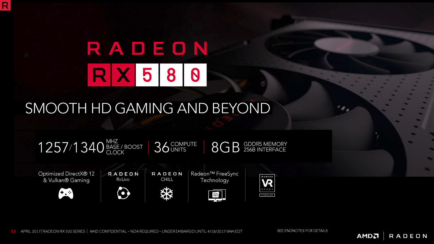 AMD lance tout d'abord ce jour les Radeon RX 580 et RX 570 qu'il faut voir comme une seconde génération de déclinaisons overclockées des Radeon RX 480 et RX 470, ni plus ni moins :