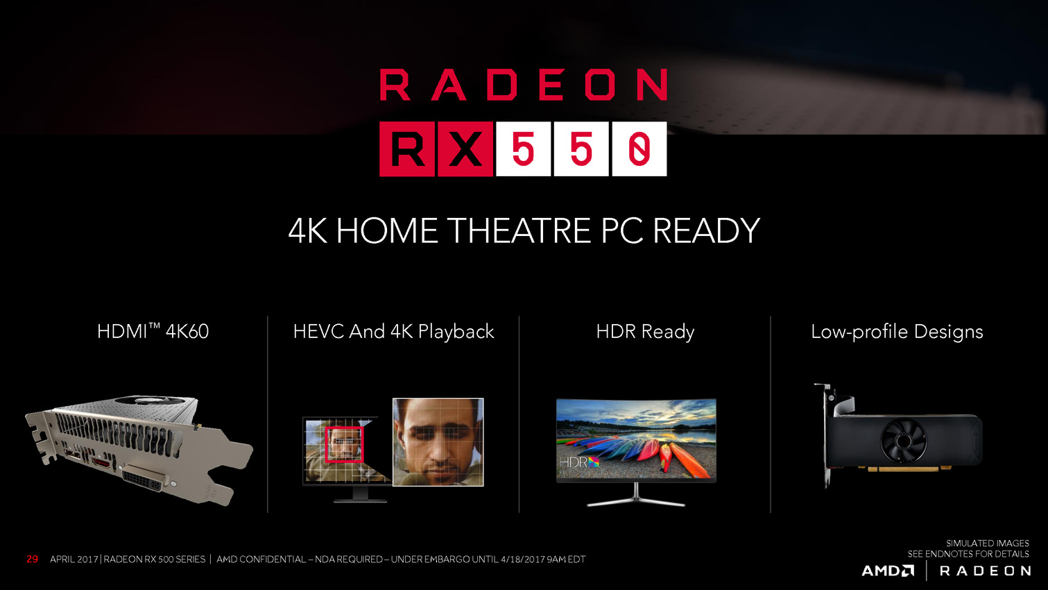 Sur PC la Radeon RX 550 sera initialement proposée en version 2 Go pour le monde du HTPC, avec un intérêt à peu près nul pour les joueurs.