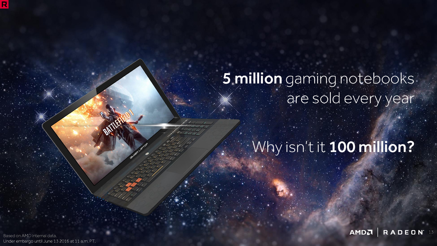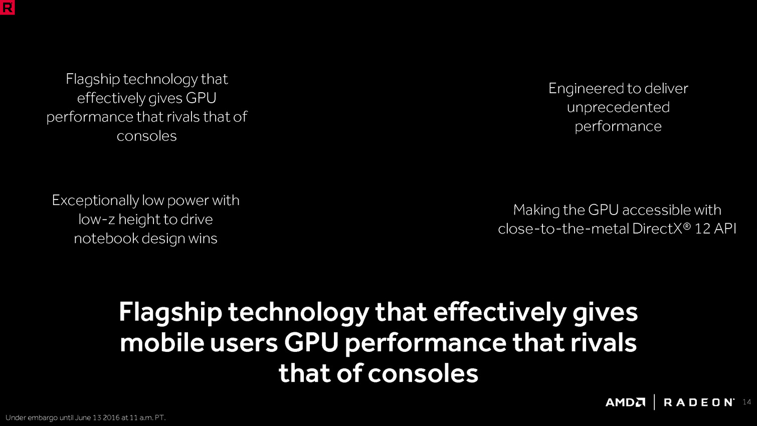 AMD réinsiste sur son intention de proposer des performances de type console à un maximum de PC portables grâce à un GPU basse consommation et précise que le packaging à une épaisseur réduire par rapport à ce qui se fait habituellement, ce qui pourrait aider dans les ultra-portables.