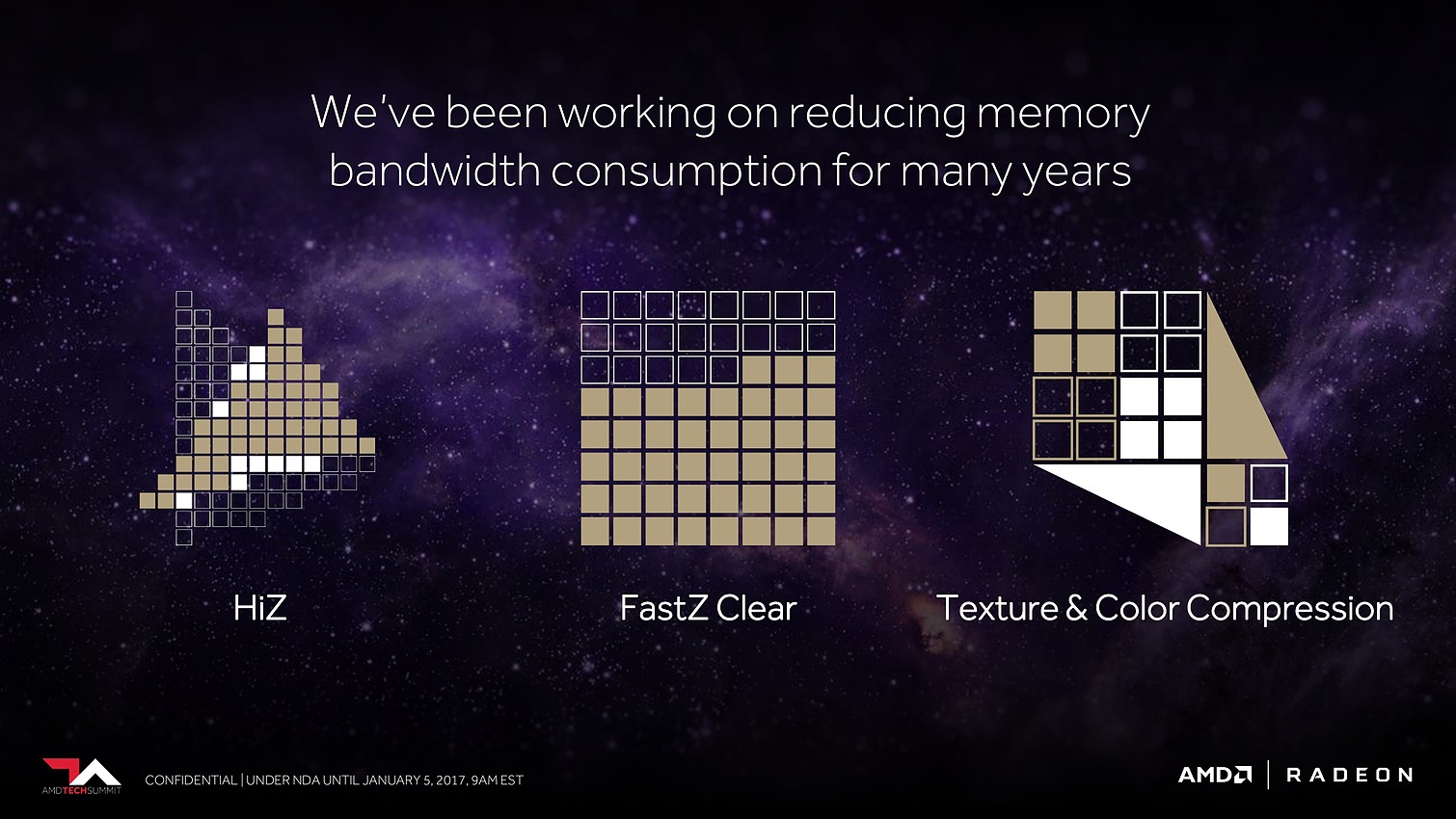 Si une absence d'évolution sur ce point par rapport à Fiji peut sembler étrange, il y a probablement d'autres aspects à prendre en compte au niveau du sous-système mémoire de Vega 10. Par ailleurs il faut rappeler qu'une Radeon RX 480 se contente de 256 Go/s et que la Titan X plafonne à 480 Go/s. Attendez-vous à ce que plus d'informations soient communiquées d'ici quelques semaines.