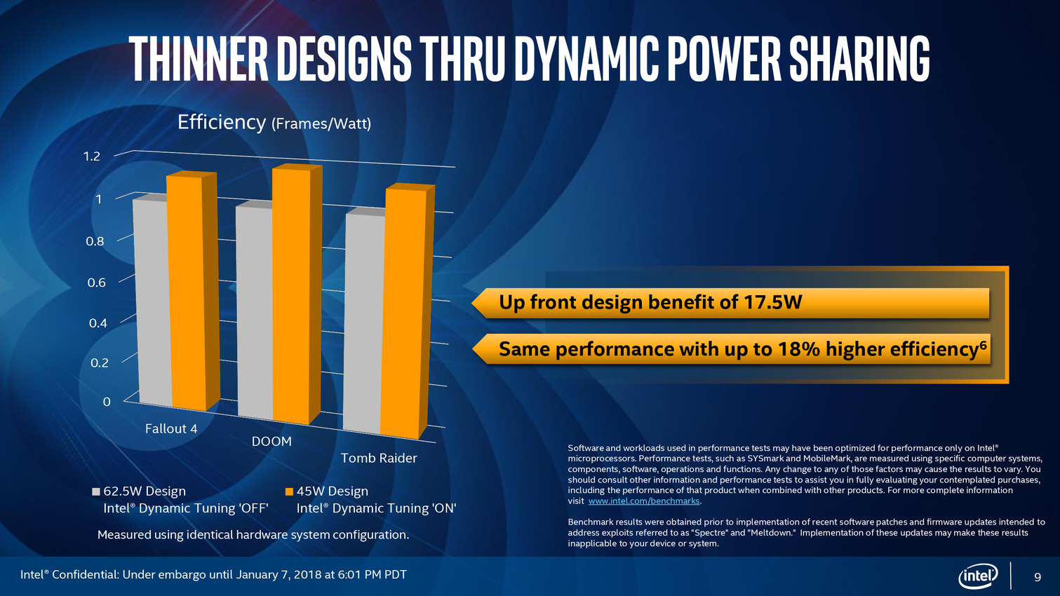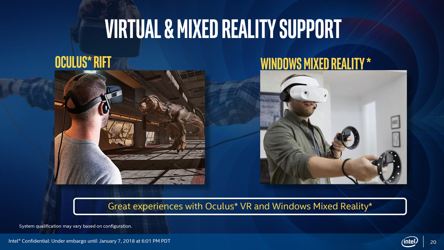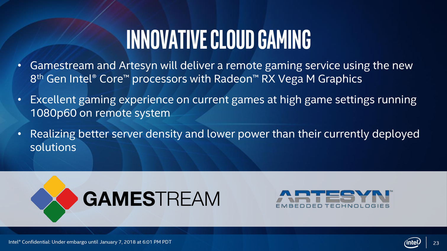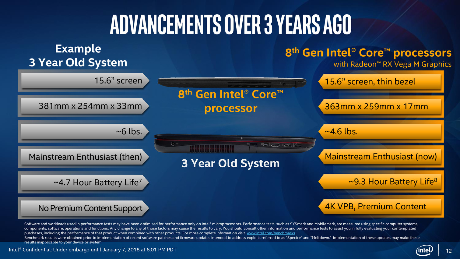 Après une annonce assez avare en détails en novembre dernier, Intel profite du CES pour lancer officiellement ses processeurs "Core de 8ème génération avec Radeon RX Vega M", que l'on connaît surtout sous le nom de Kaby Lake-G. On vous rappellera que les RX Vega sont des GPU AMD, Intel évitant soigneusement de le mentionner dans sa communication !