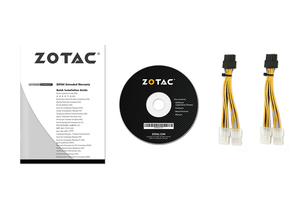 La première fait là encore appel à un blower qui semble assez basique et fonctionne aux vitesse de référence soit 1480/1582 MHz pour le GPU et 11 Gbps pour les 11 Go de GDDR5X 352-bit. La connectique est la même que sur la carte de référence, que ce soit au niveau des sorties vidéos (3DP1.4 et 1xHDMI 2.0) que de l'alimentation (6-pin+8-pin), tout comme l'encombrement. Niveau accessoires, Zotac fournit un adaptateur DisplayPort vers DVI, un 2xMolex vers PCIe 6-pin et un 2xPCI-e 6-pin vers PCIe 8-pin.
