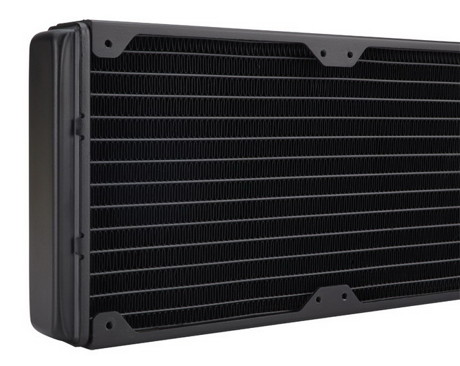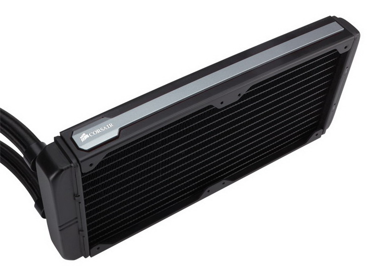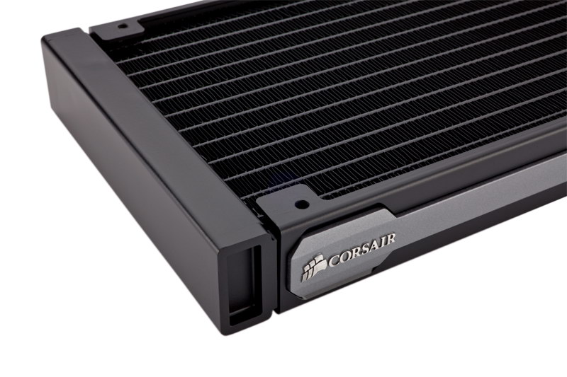 Outre sa pompe CoolIT, le H110i GT se distingue également par la taille de son radiateur type 280mm (140 x 322 x 27 millimètres), le kit étant fourni avec deux ventilateurs 140mm (25 mm de hauteur) annoncés pour 2100 tours/minute pour 113 CFM.