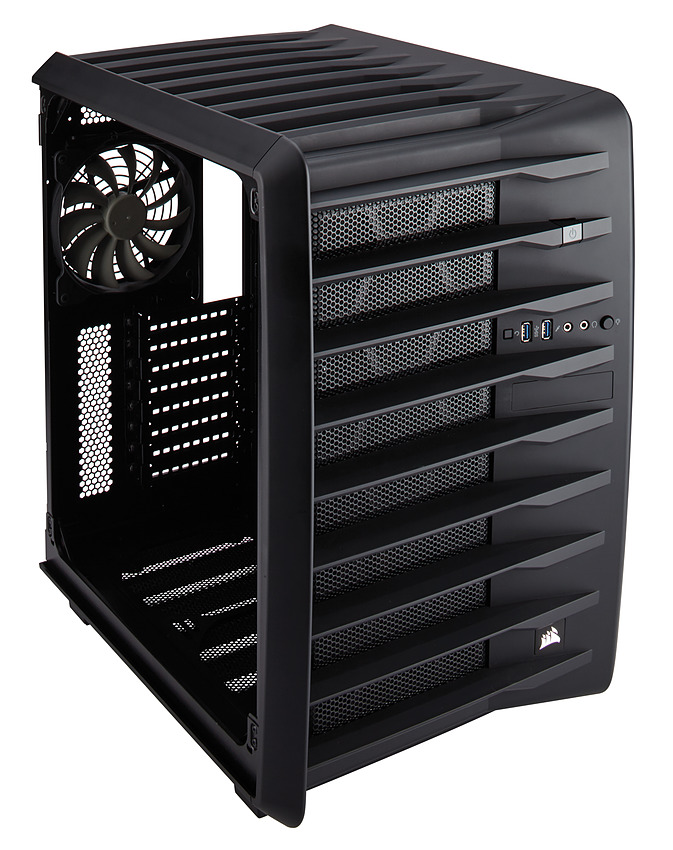 Corsair vient d'annoncer un nouveau boîtier assez original, le Carbide Air 740. Il fait suite au modèle 540 lancé en 2013 et dont il reprend le concept : séparer le boîtier en deux zones (un concept que l'on retrouve également chez Lian-Li avec son PC-D600). Dans la zone de gauche, on placera la carte mère et dans celle de droite l'alimentation et les disques.