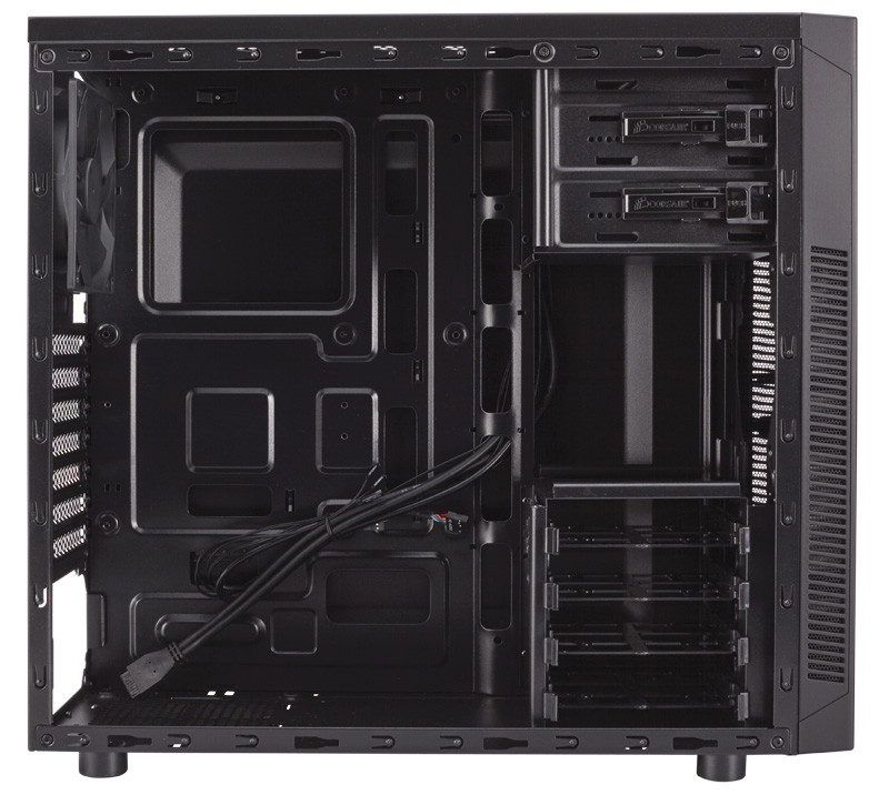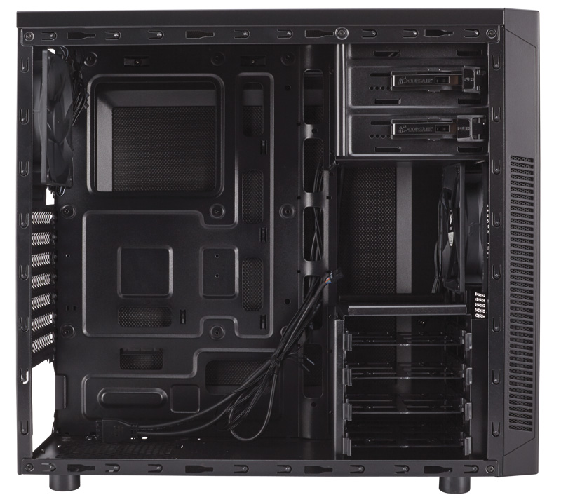 Ces moyens tours mesurent 471x200x430mm pour 4,8 Kg et acceptent les cartes mères ATX, microATX et Mini-ITX. On dispose de 2 baies 5.25" et de 4 emplacements 3.5"/2.5", avec un montage sans outils en 5.25" et 3.5". La carte graphique peut mesurer 414mm dans le premier slot PCI-Express mais si vous envisagez du SLI/CFX la seconde devra se contenter de 275mm.
