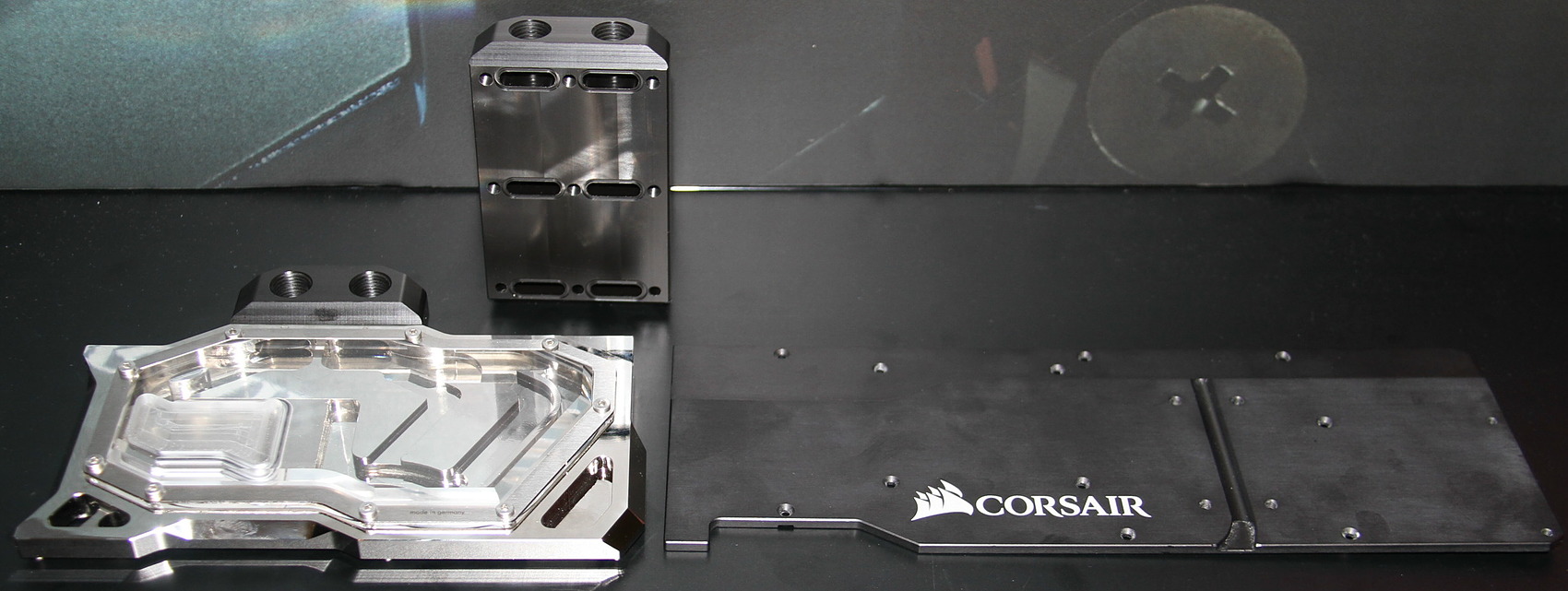 Pour aller plus loin dans le watercooling, Corsair travaille sur une gamme d'éléments destinés aux circuits personnalisés. Dans un premier temps, Corsair s'associe à l'allemand Aqua Computer pour proposer 2 blocs CPU et un bloc GPU. Les premiers seront compatibles avec la plupart des sockets CPU (sauf TR4/SP3) alors que le second est prévu pour les GTX 1070/1080.1080 Ti. Un module SLI et 3-way est également prévu. Par la suite Corsair complètera cette gamme watercooling dans le but de pouvoir proposer tous les éléments nécessaires.