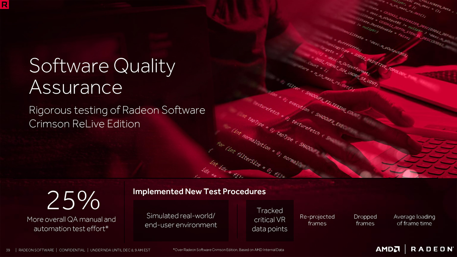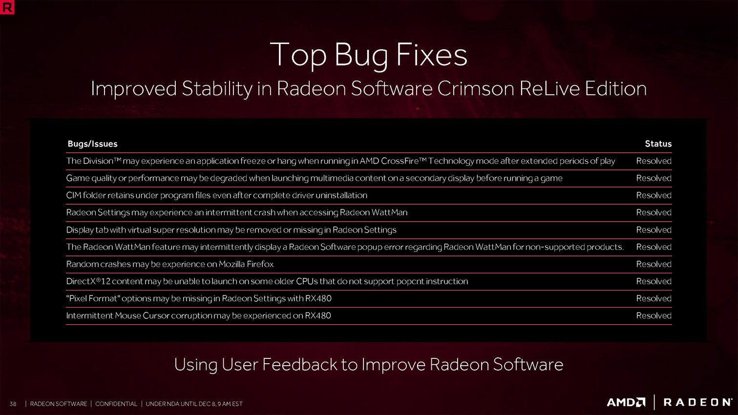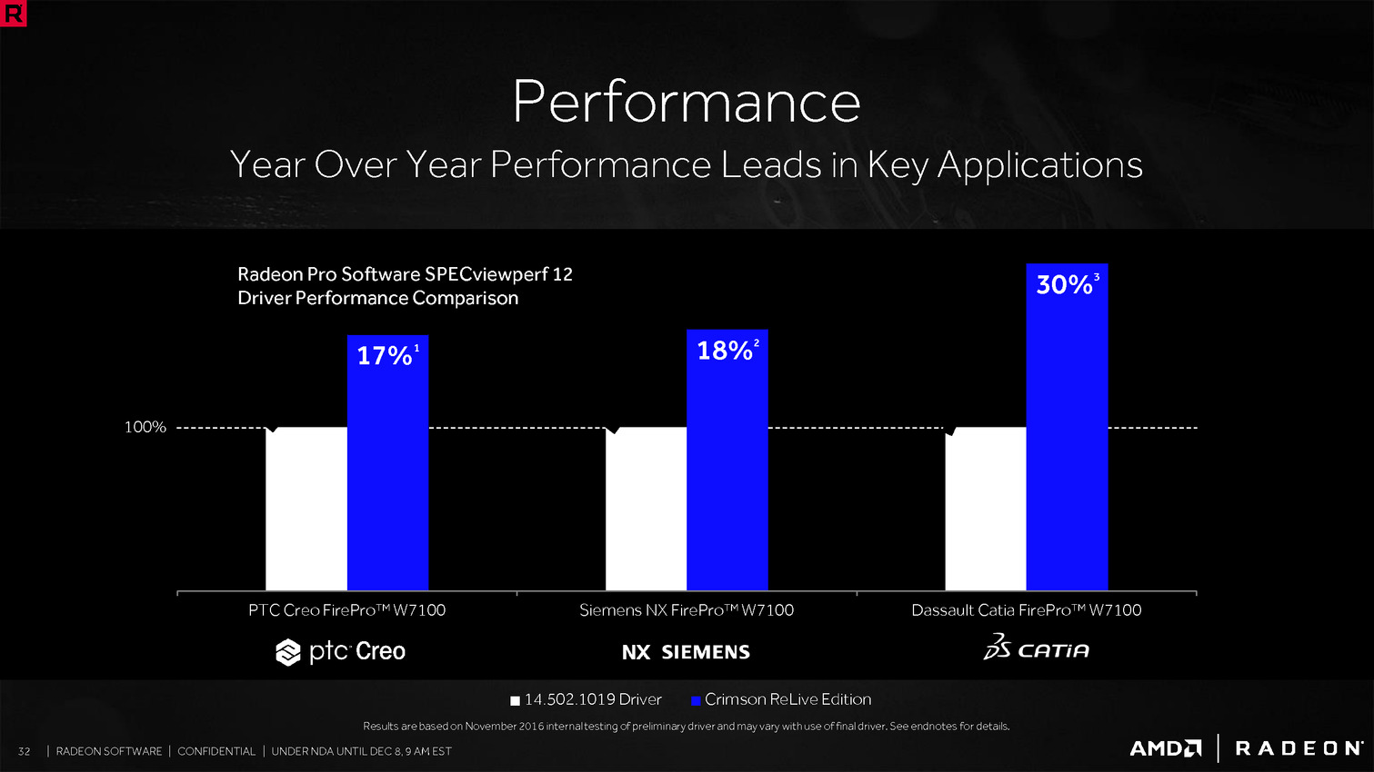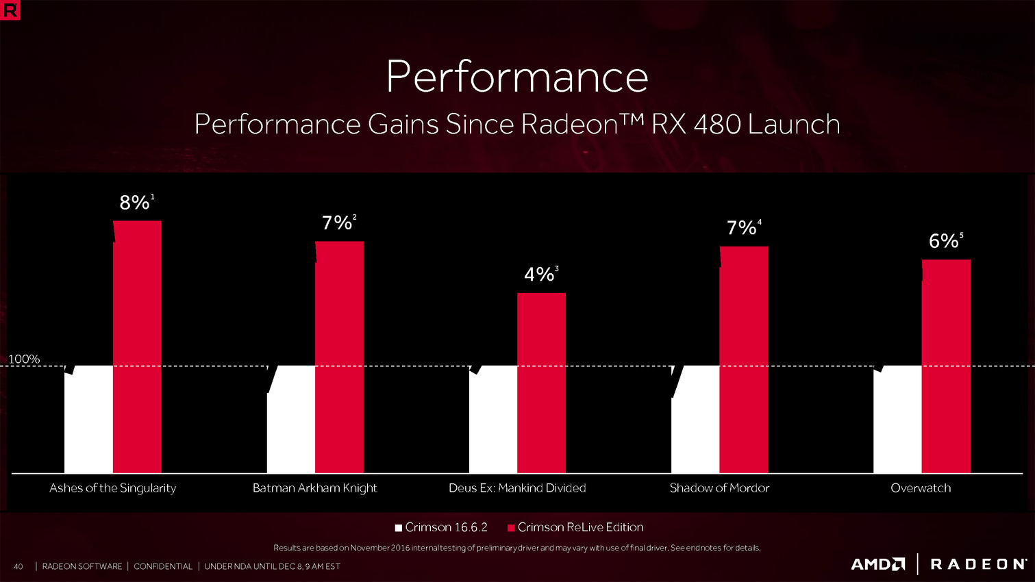 Comme en 2014 et en 2015, AMD profite de la fin de l'année pour proposer une évolution majeure de ses pilotes baptisée Radeon Software Crimson ReLive Edition en référence à l'une des nouvelles fonctionnalités phares dédiée au streaming en temps réel.