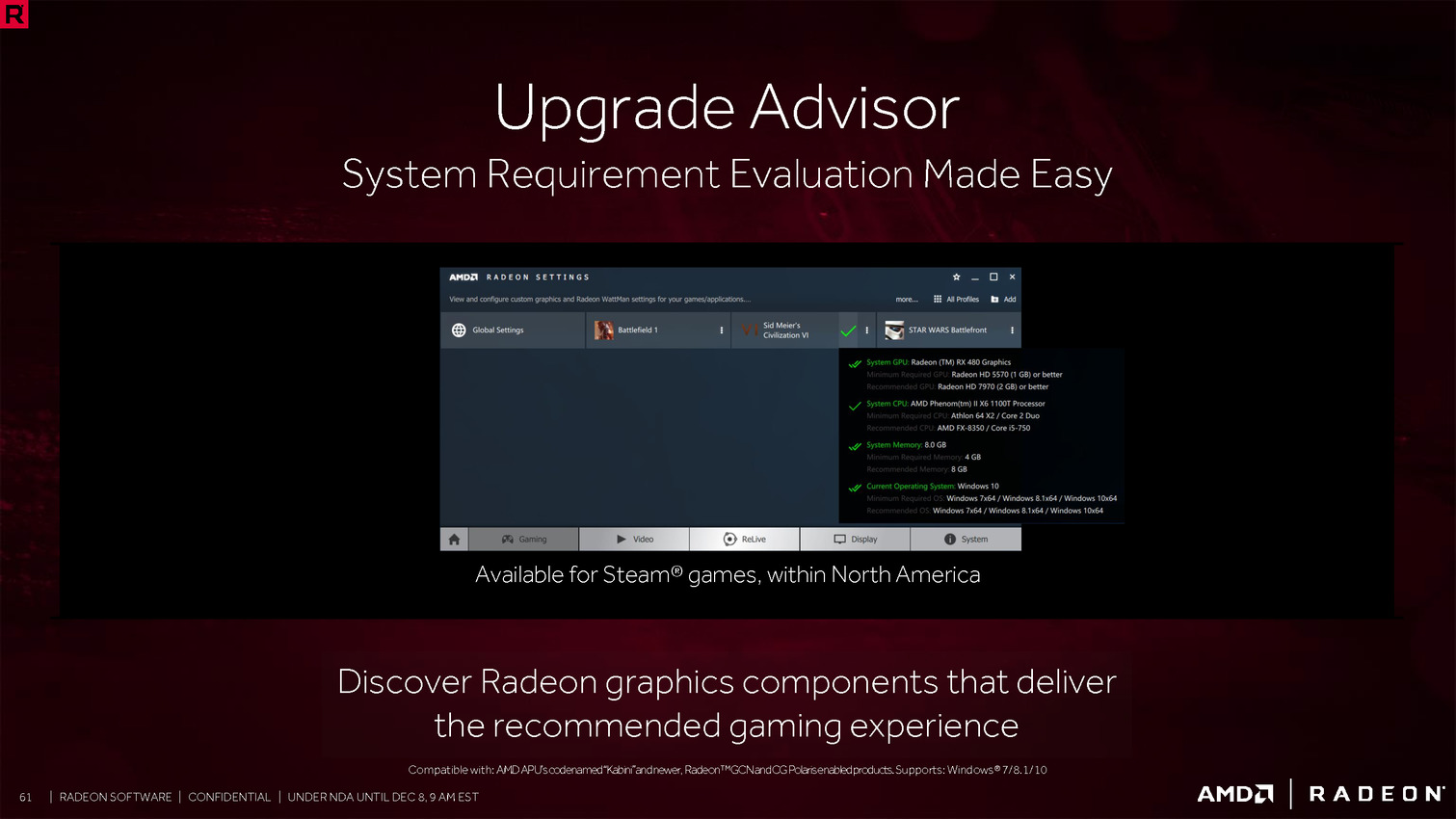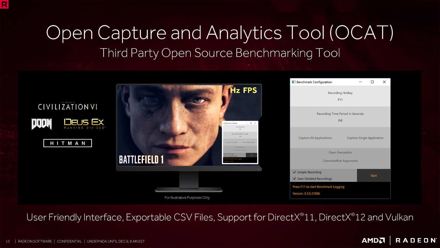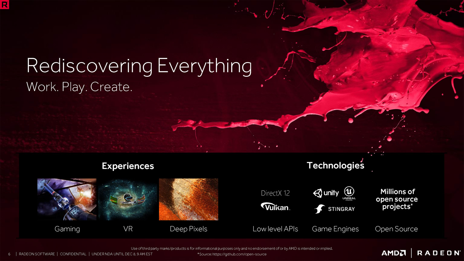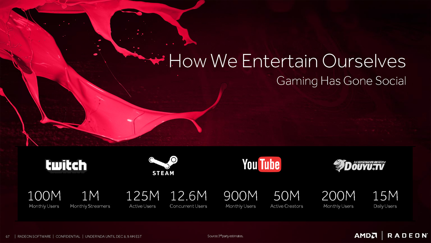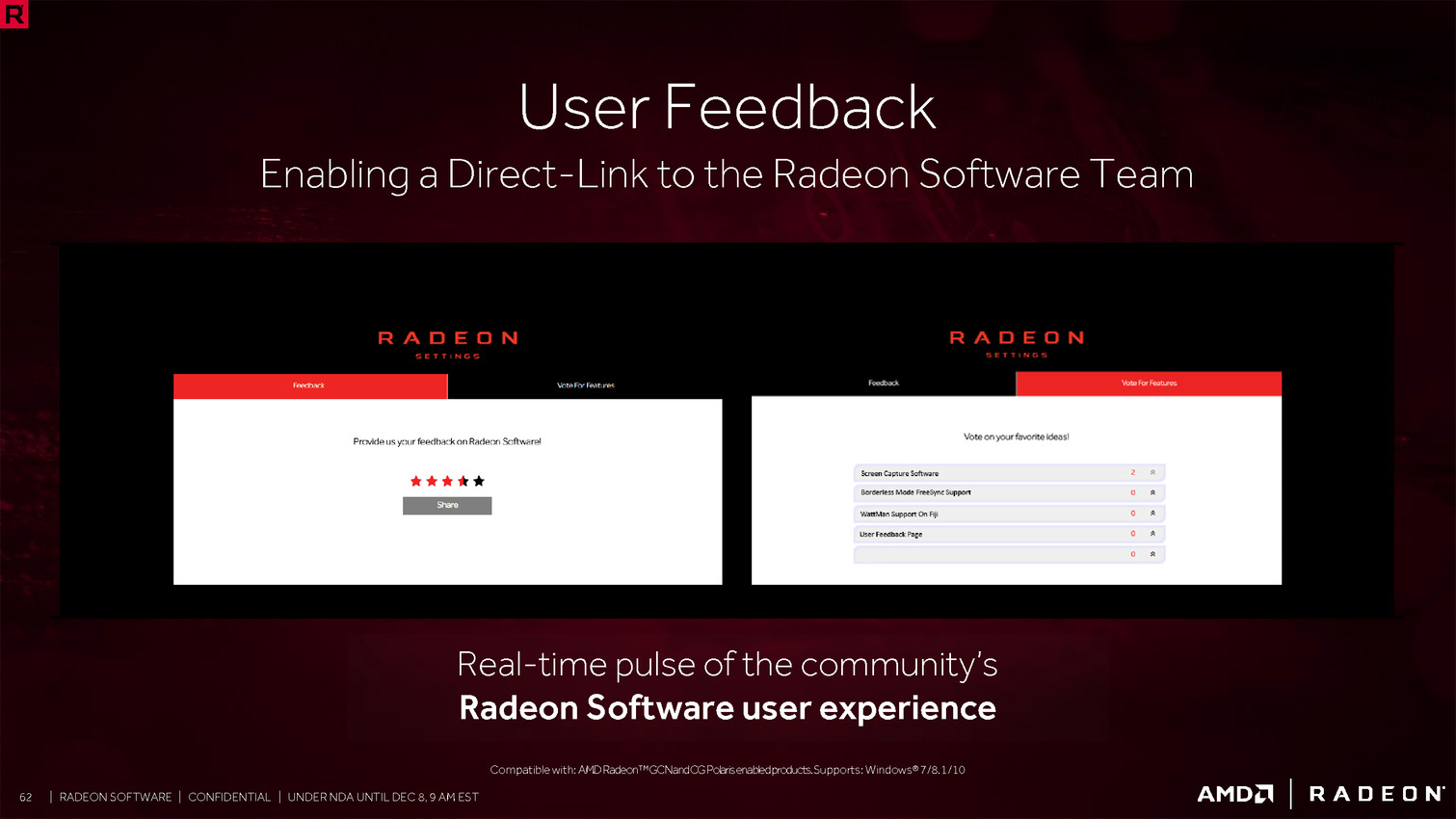 Comme en 2014 et en 2015, AMD profite de la fin de l'année pour proposer une évolution majeure de ses pilotes baptisée Radeon Software Crimson ReLive Edition en référence à l'une des nouvelles fonctionnalités phares dédiée au streaming en temps réel.