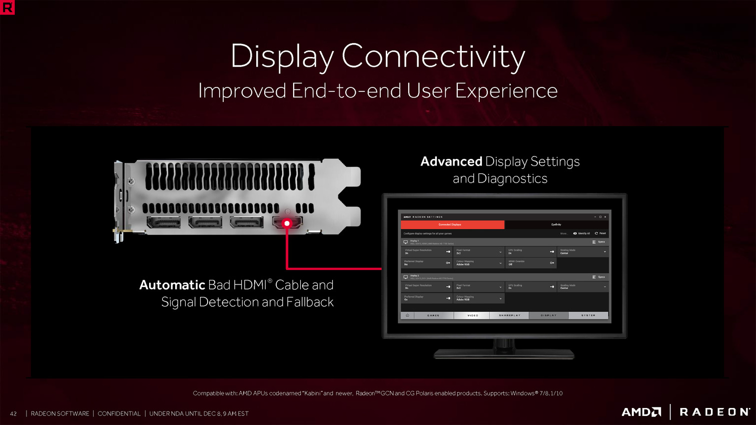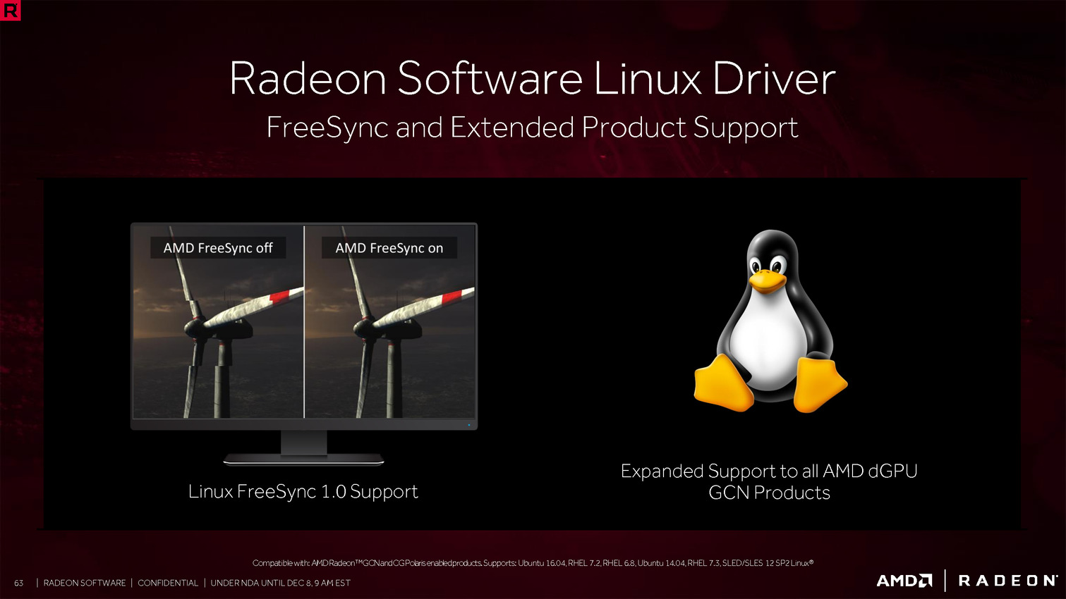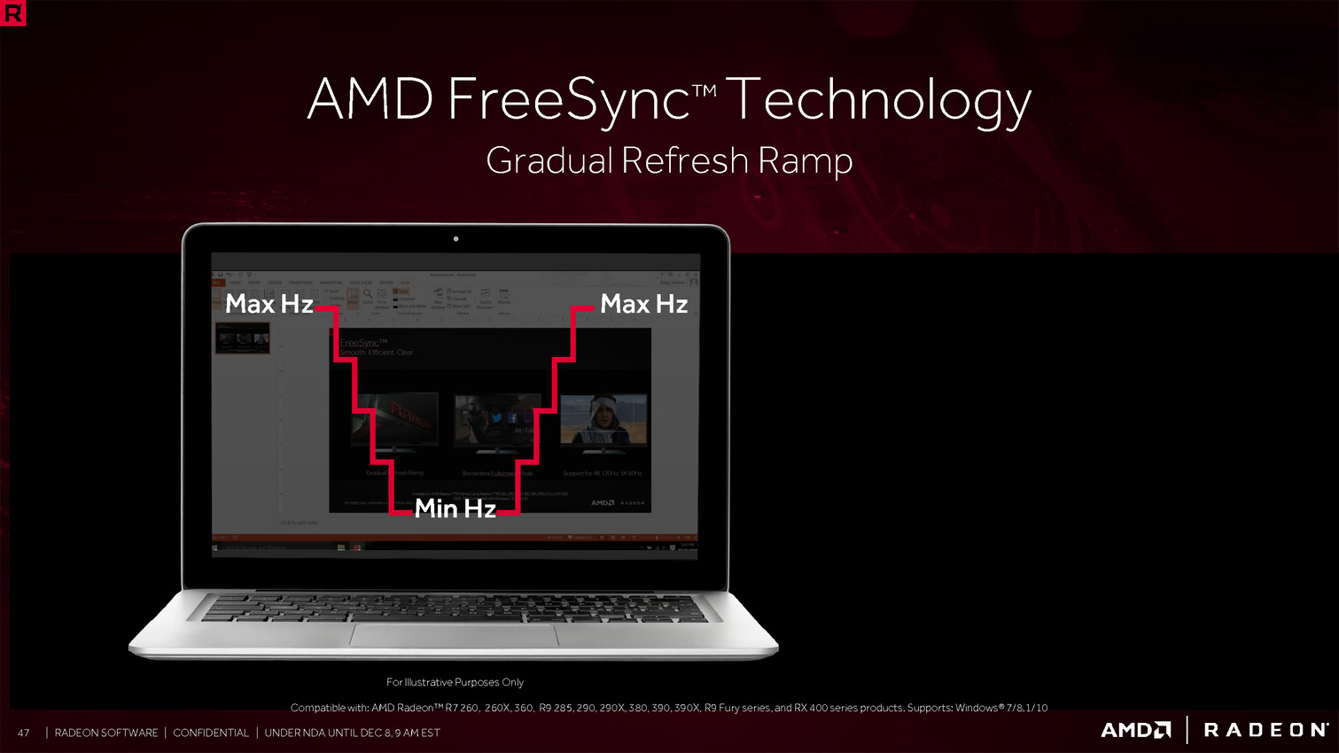 Il y a également du neuf du côté de FreeSync avec enfin l'ajout du support des modes fenêtres et plein écran "borderless". De quoi permettre de profiter de FreeSync sur les systèmes multi écrans mais également dans les jeux qui ne proposeraient pas de plein écran exclusif. Par ailleurs activer FreeSync en mode fenêtré permettra dans certains cas d'améliorer le temps de réponse.