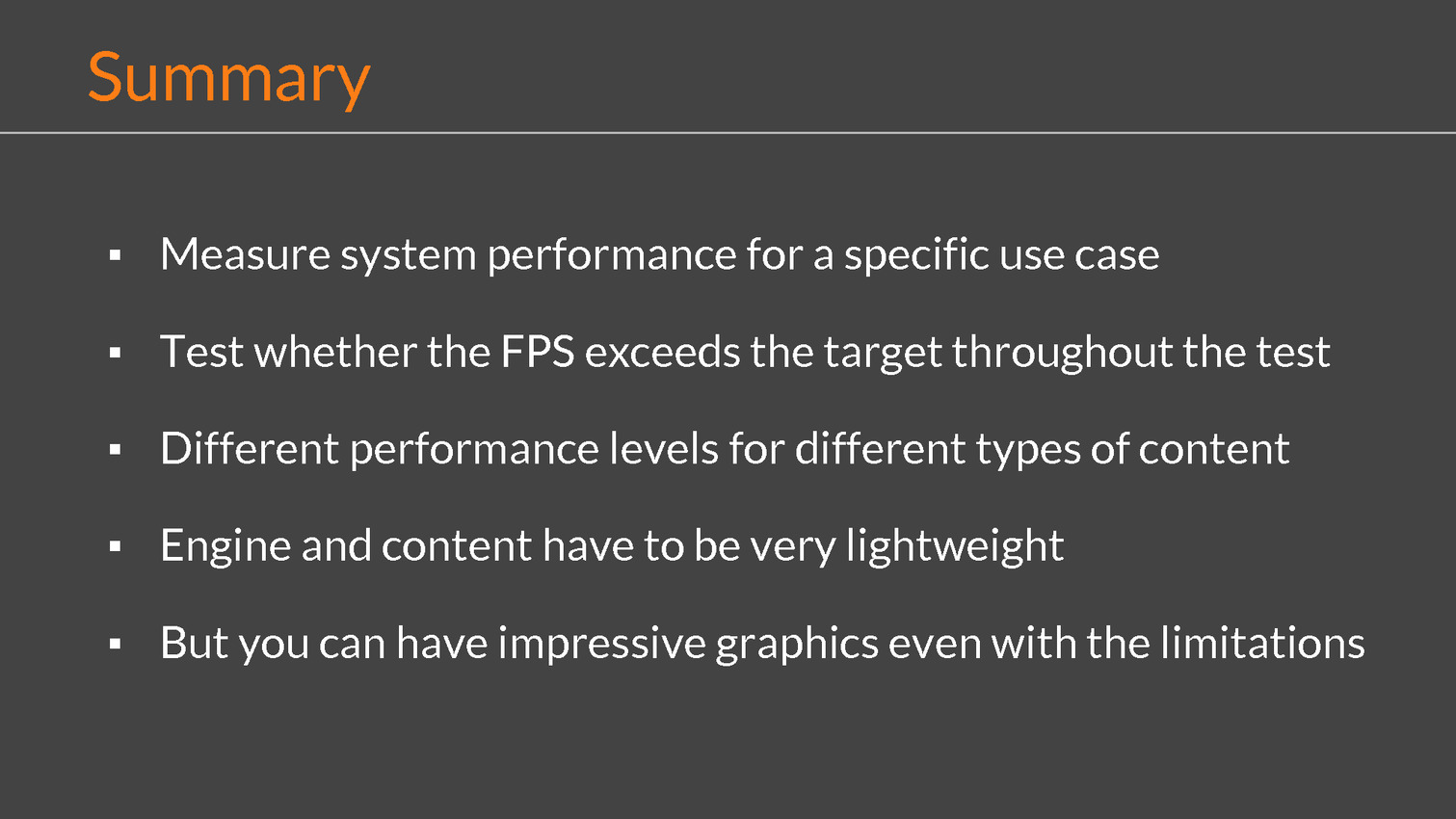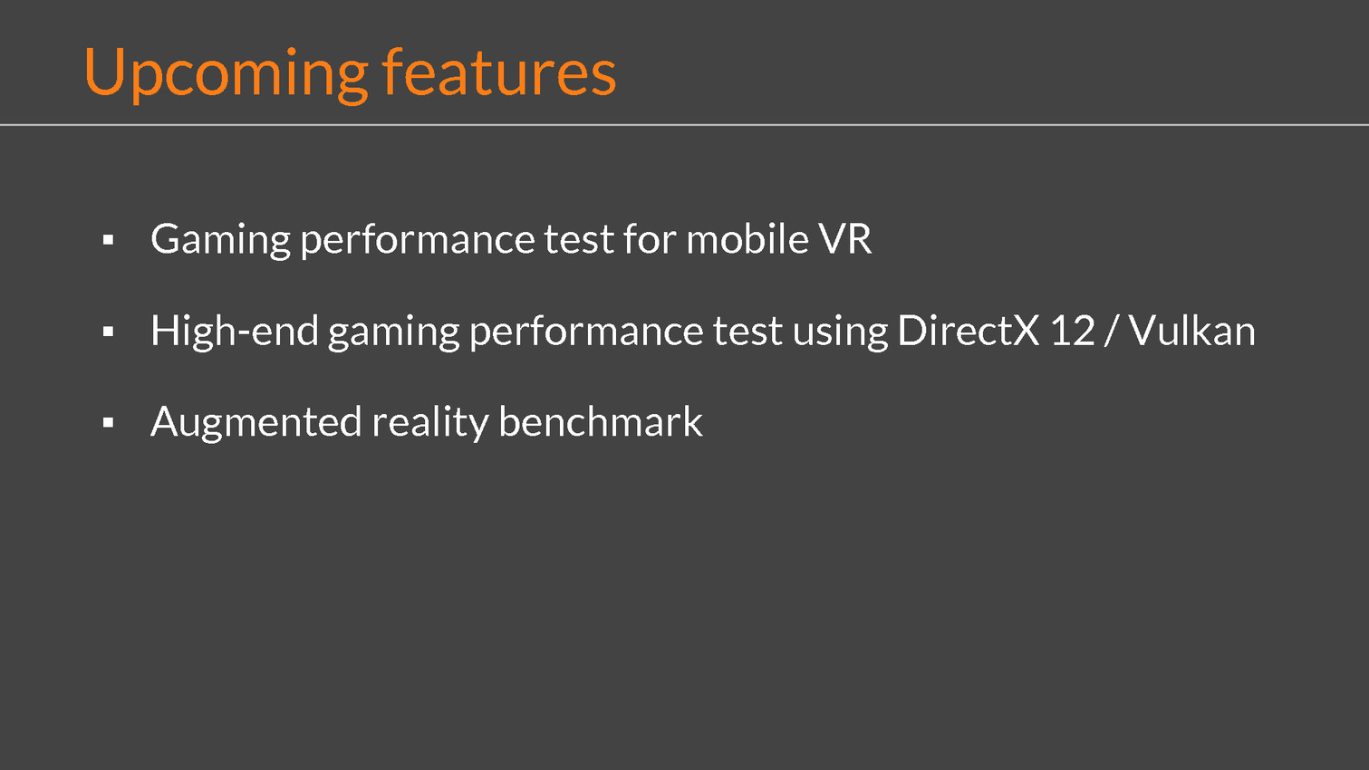 Les investissements conséquents opérés récemment par les différents acteurs de l'industrie envers le développement de la réalité virtuelle entretiennent l'idée du développement d'un large marché et donc de la multiplication des casques dédiés et des systèmes exploités à cet effet. Ce type d'environnement est idéal pour les spécialistes du benchmark qui tirent la majorité de leurs revenus de l'exploitation professionnelle de leurs outils d'évaluation.
