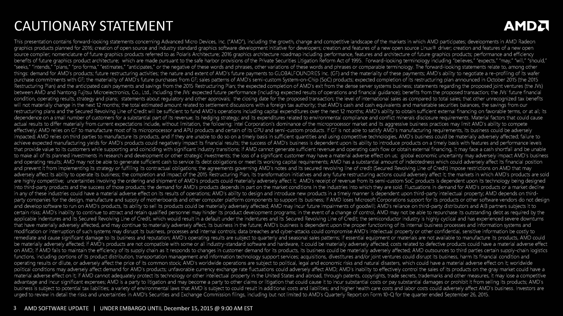 Et sans directement citer son concurrent, c'est bien entendu à l'aspect fermé de GameWorks qu'entend s'attaquer AMD. Nvidia préfère en effet conserver un contrôle total sur certaines librairies et dans certains cas les exploiter en priorité de manière à dégager un avantage compétitif direct plutôt qu'à simplement mettre dans les mains des développeurs de quoi les aider à améliorer leurs jeux. Si la philosophie d'AMD est en général tournée vers l'ouverture, il ne faut pas oublier que ces orientations sont également dictées par la force de chacun sur le marché. Nvidia peut profiter du poids de ses parts de marchés énormes pour imposer une stratégie agressive, ce que pourrait difficilement faire AMD dans sa situation actuelle.
