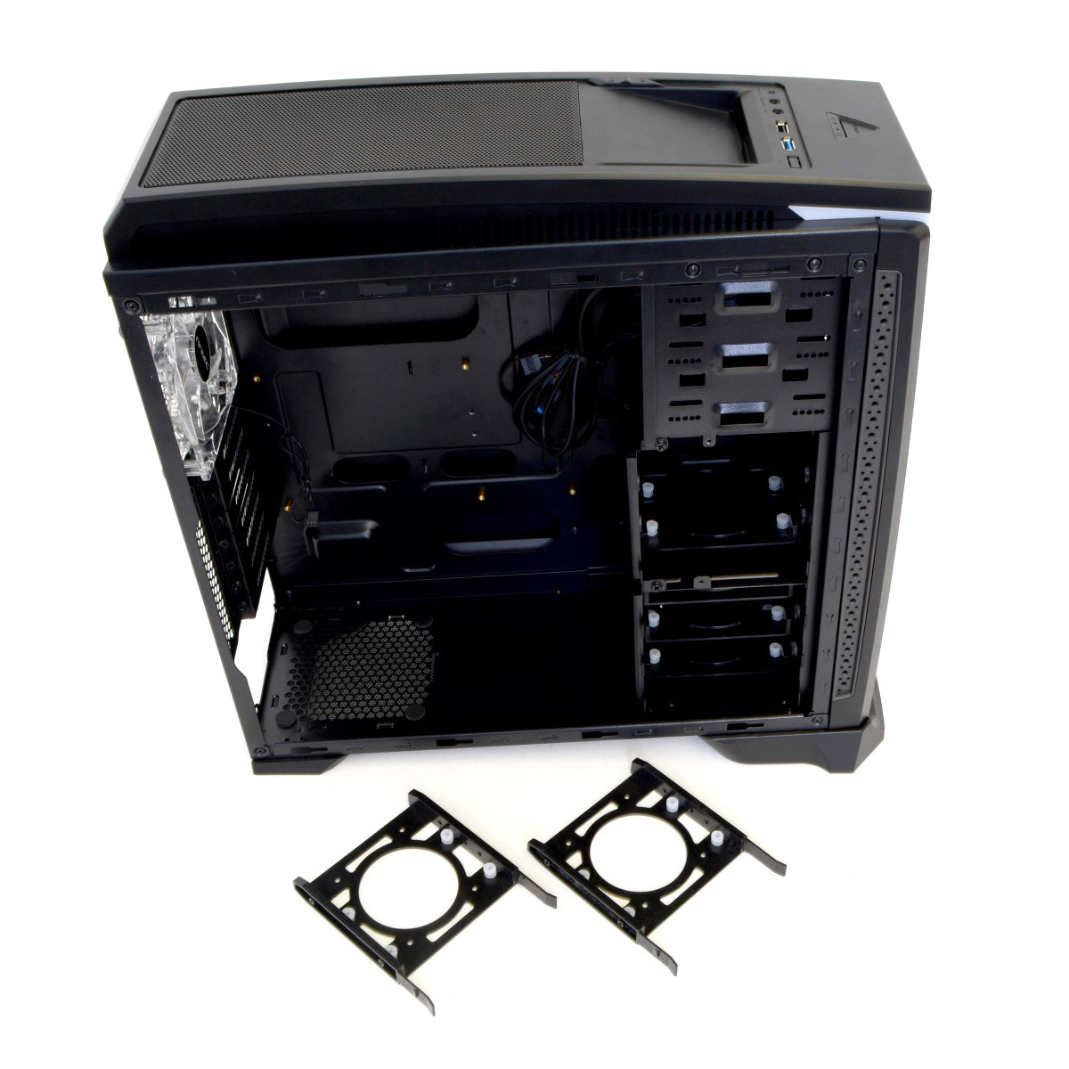 Pour ce tarif Antec propose un boitier qui intègre 6 emplacements 3.5"/2.5" et 3 baies 5.25". Etonnamment le radiateur processeur ne peut pas dépasser les 140mm de hauteur, alors que côté carte graphique Antec annonce 400mm. Cette longueur est toutefois atteinte en retirant 3 emplacements 3.5"/2.5", la longueur de base n'étant pas communiquée.