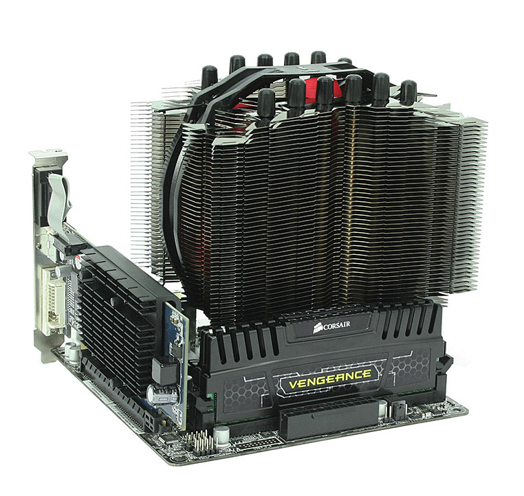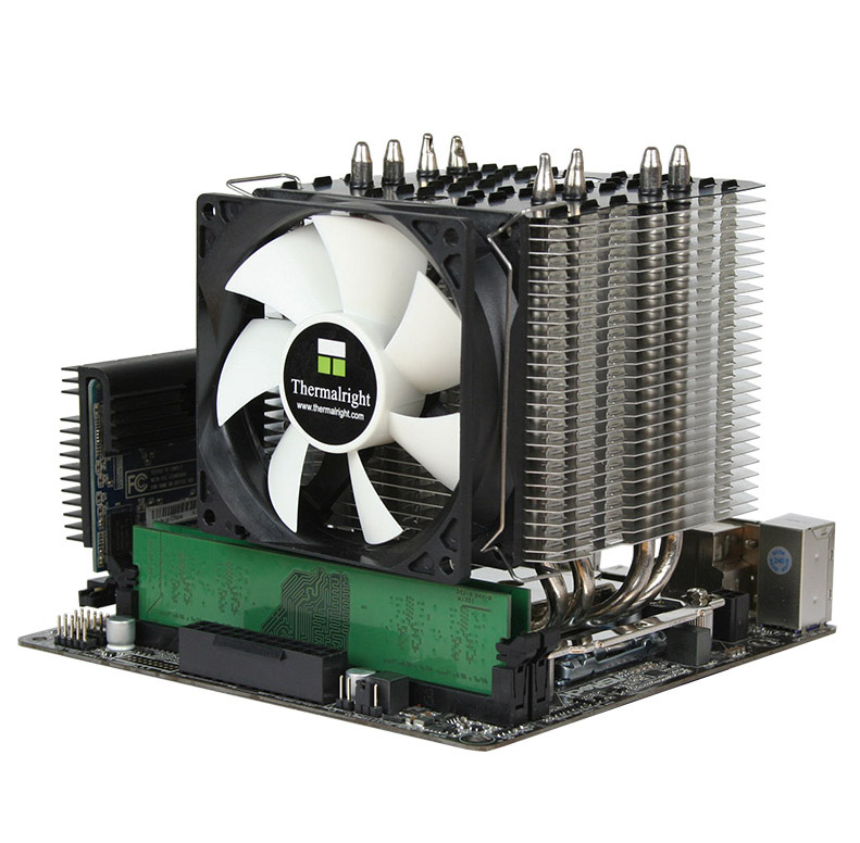 A contrario, le radiateur reste très large malgré le passage de 8 à 6 caloducs et gênera donc l'usage d'une carte PCI Express sur les cartes mères disposant d'un Socket trop proche du PCI Express x16. Sur la liste de compatibilité , Thermalright conseille sur ce type de carte de s'orienter vers le True Spirit 120i . Moins large (132mm) et disposant d'un design asymétrique, il mérite clairement plus la dénomination ITX que ce Silver Arrow !