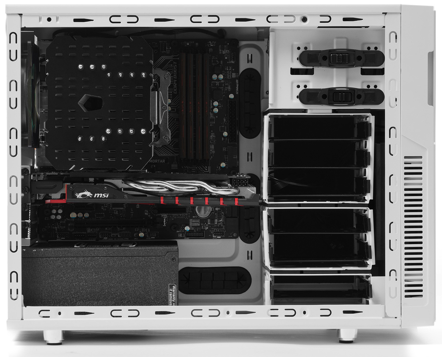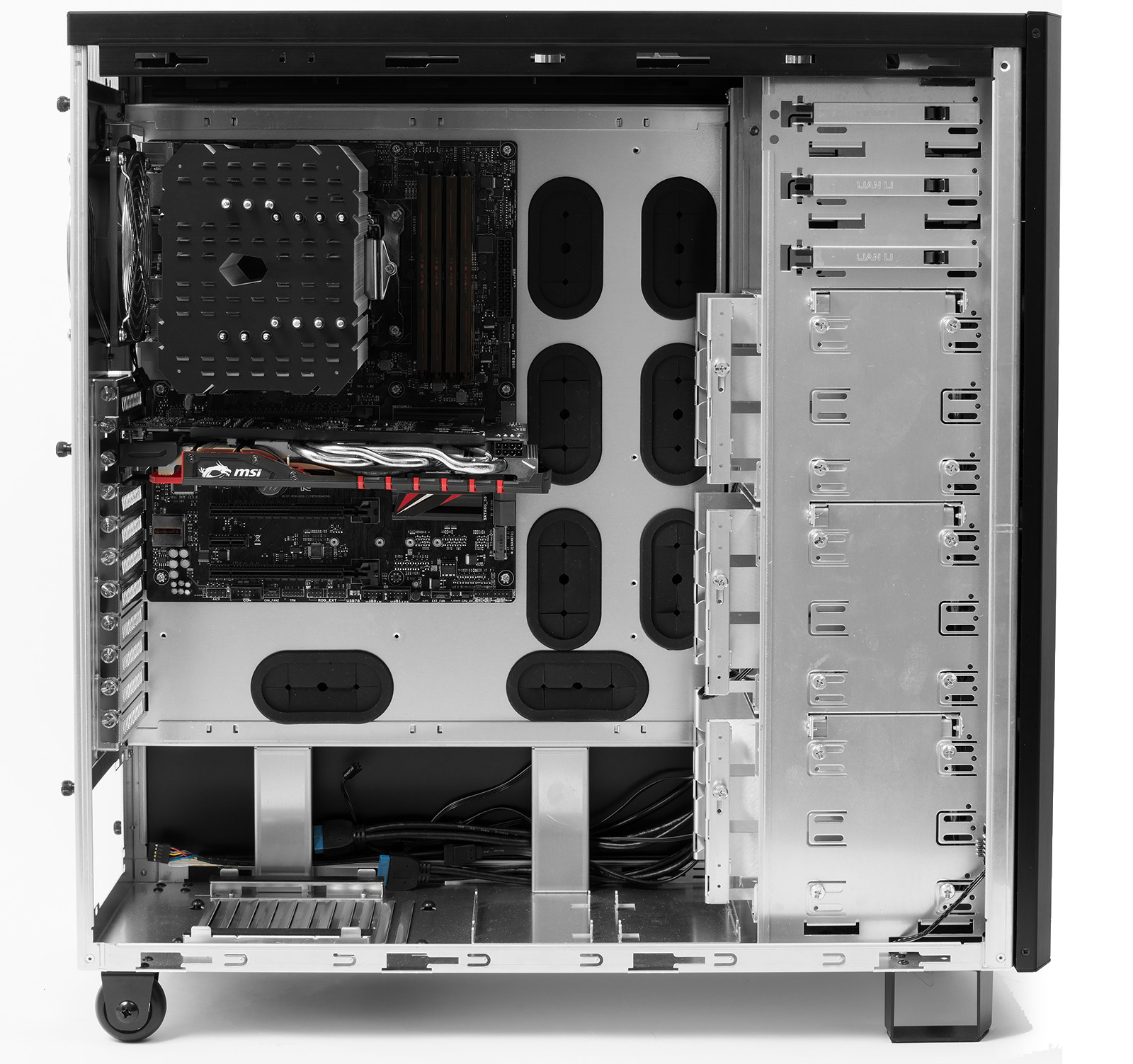 En fait le principal changement niveau encombrement vient surtout de l'absence d'un second ventilateur qui ne vient plus prendre place au-dessus des slots DIMM et permet d'utiliser des radiateurs mémoire pleine hauteur, ce qui n'a pas grand-chose à voir avec l'ITX.
