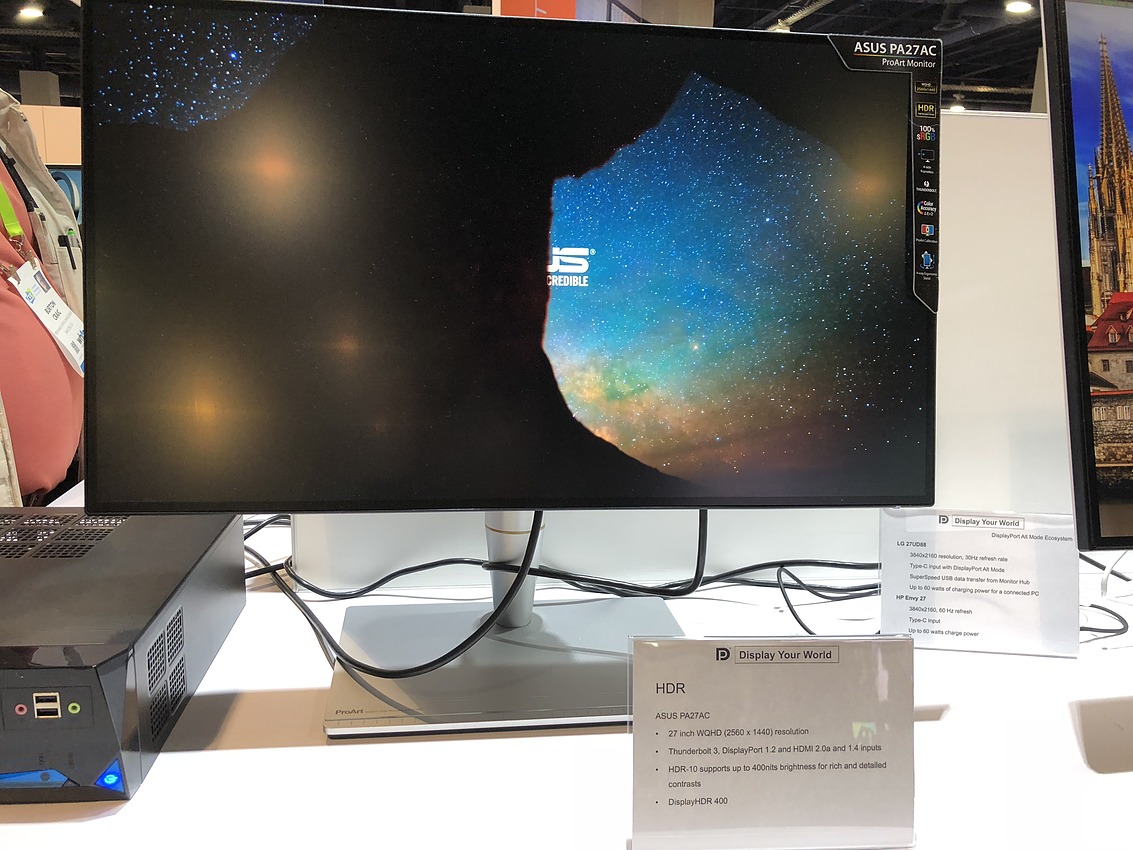 Outre le pilotage de 6 écrans externes avec un Ultrabook, on pouvait voir quelques démonstrations et rappels des technologies introduites ces derniers temps par le consortium VESA. On passera rapidement sur l'Adaptative Sync et l'USB Type-C Alt-Mode pour revenir sur la certification Display HDR lancée le mois dernier.