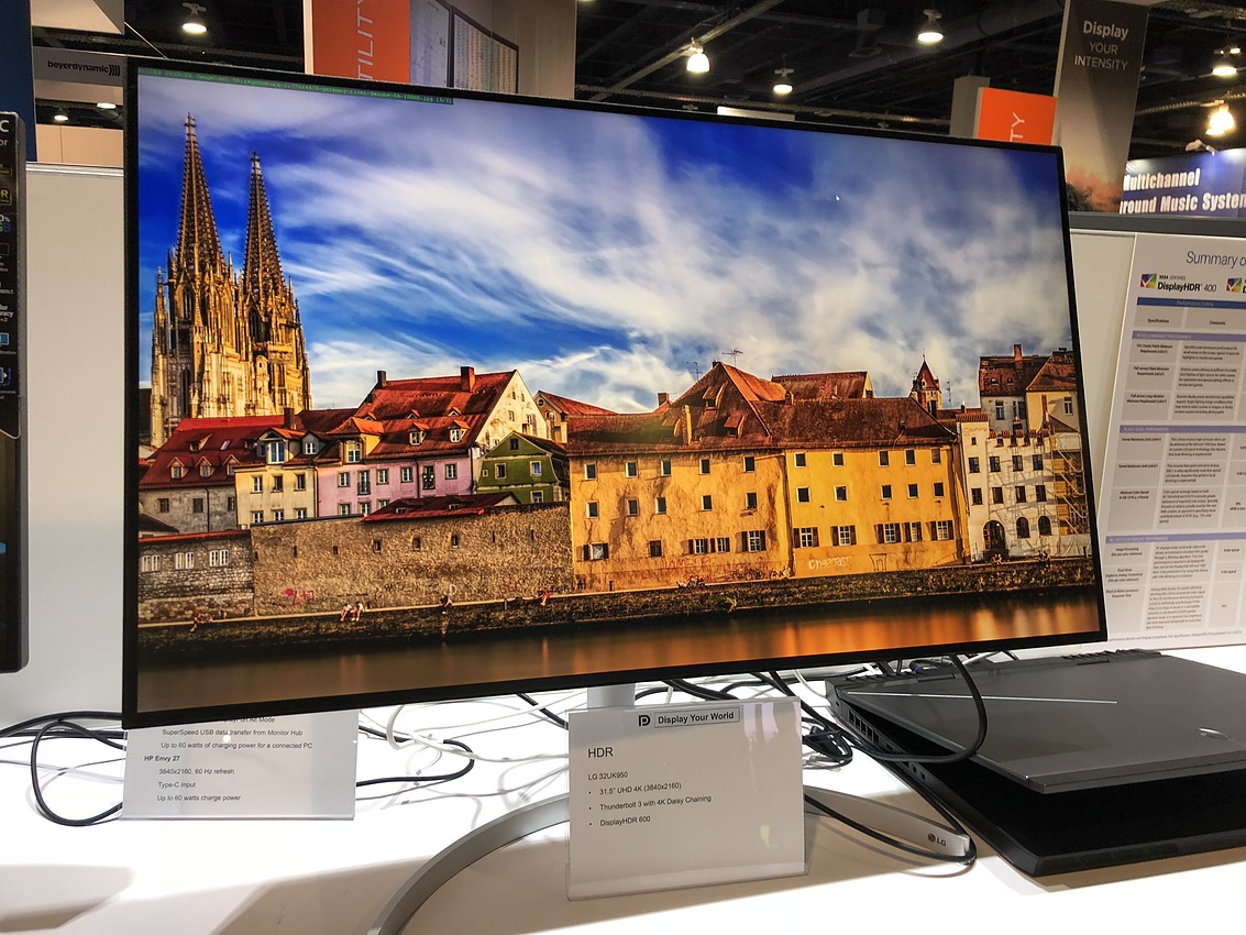 Quatre modèles étaient présentés, un Asus PA27AC en DisplayHDR 400, un Samsung CHG70 en DisplayHDR 600, un LG 32UK950 (4K en Thunderbolt 3 en DisplayHDR 600 également) et un Philips 436M6 en DisplayHDR 1000.