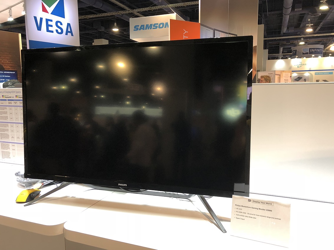 A noter que cet écran Philips dispose d'une connectique USB Type-C. D'autres modèles d'écrans USB Type-C devraient être présentés, mais ils étaient en cours d'installation lors de notre passage ce matin sur le stand du consortium.
