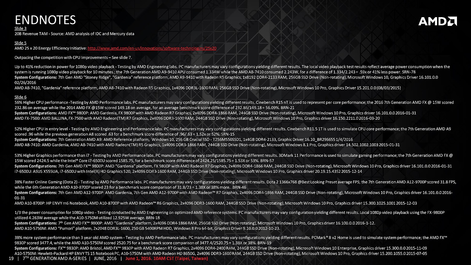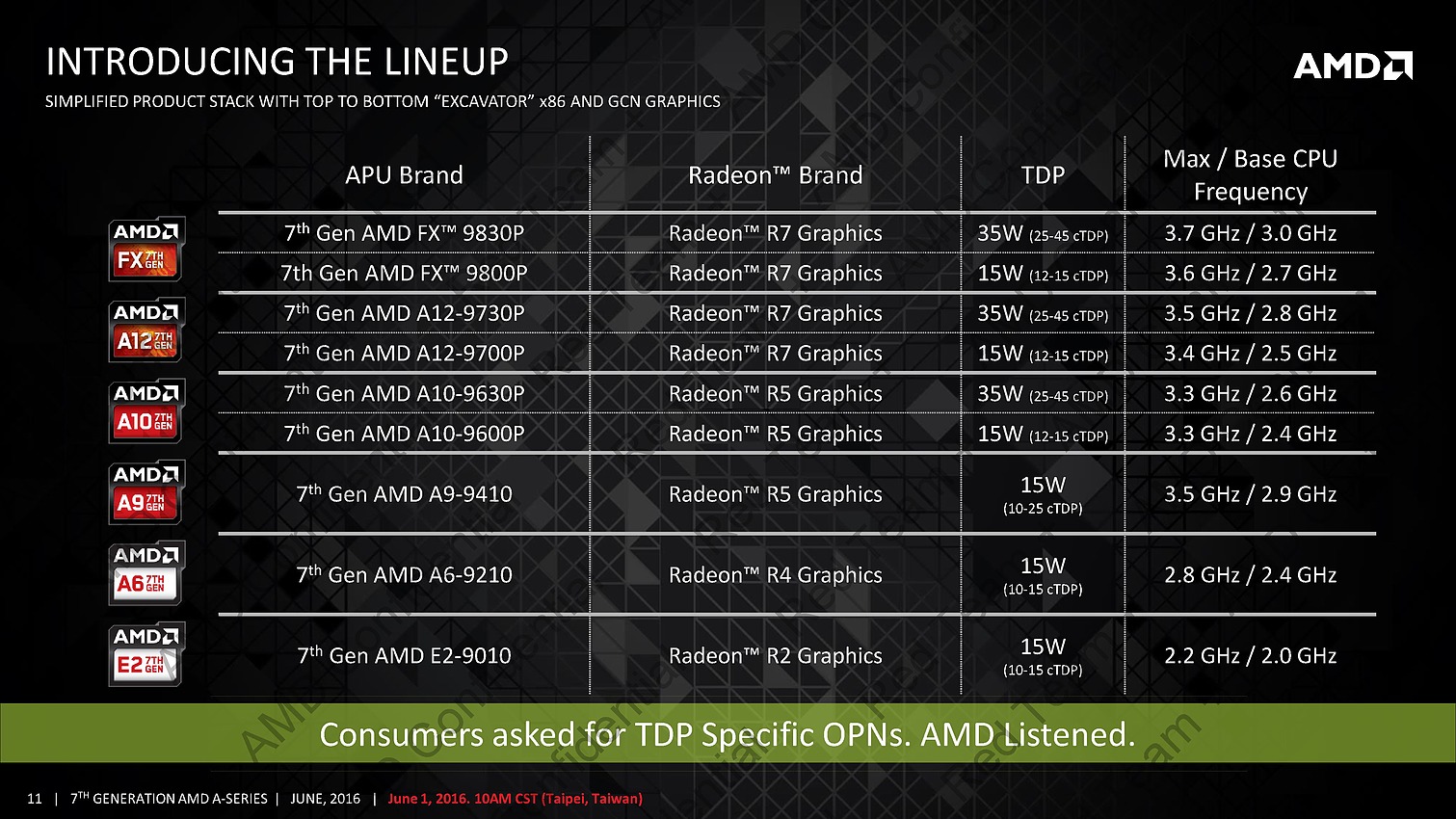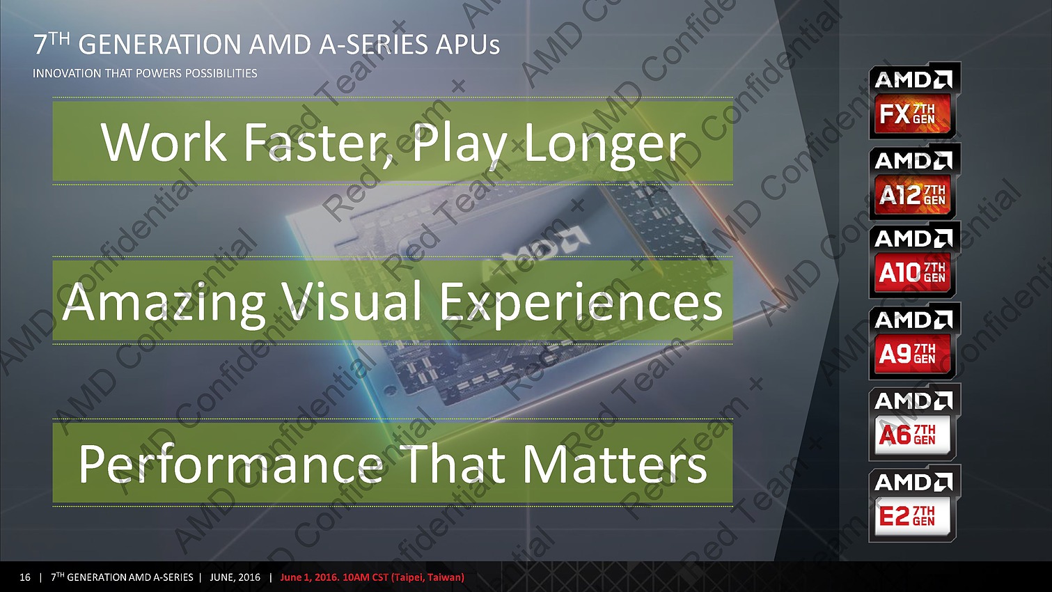 AMD profite du Computex pour annoncer ce qu'il appelle sa 7è génération d'APU, composée de deux puces : Bristol Ridge et Stoney Ridge.