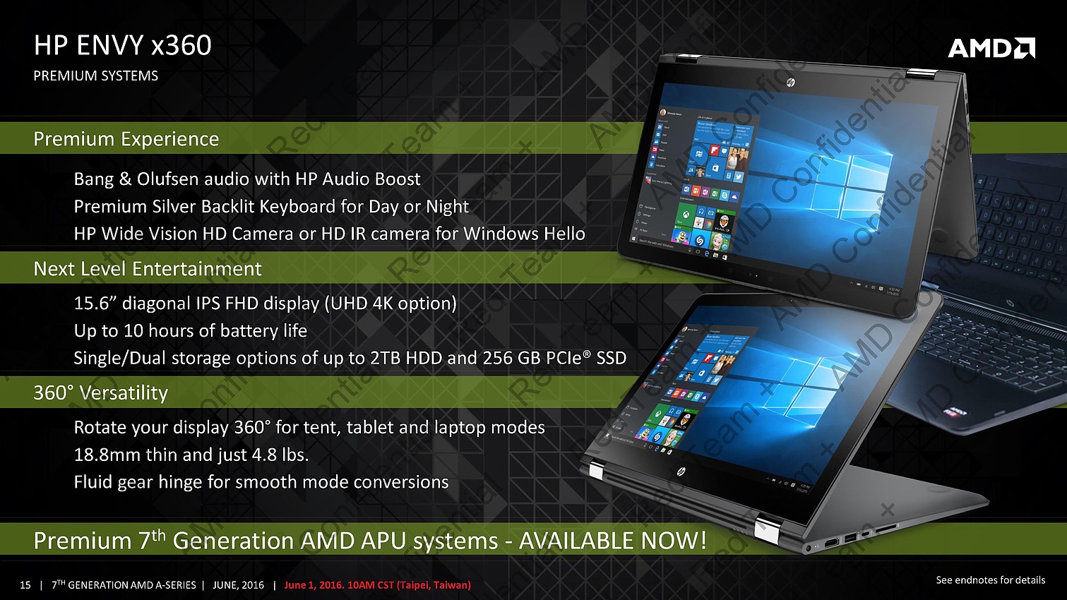 Le premier produit utilisant ces APU sera l'HP ENVY x360 déjà annoncé il y a quelques semaines, il utilisera selon les versions l'une ou l'autre des puces.