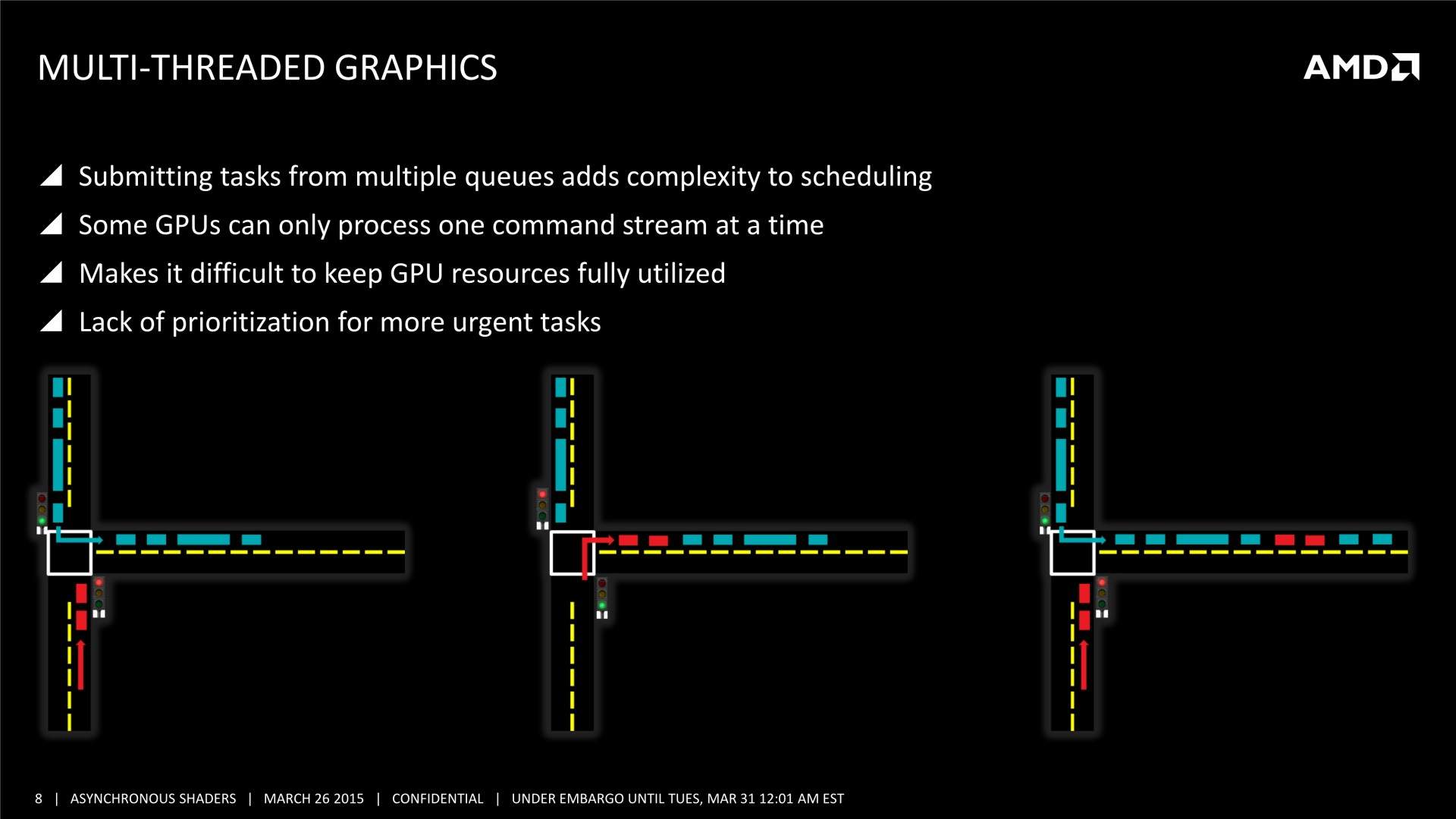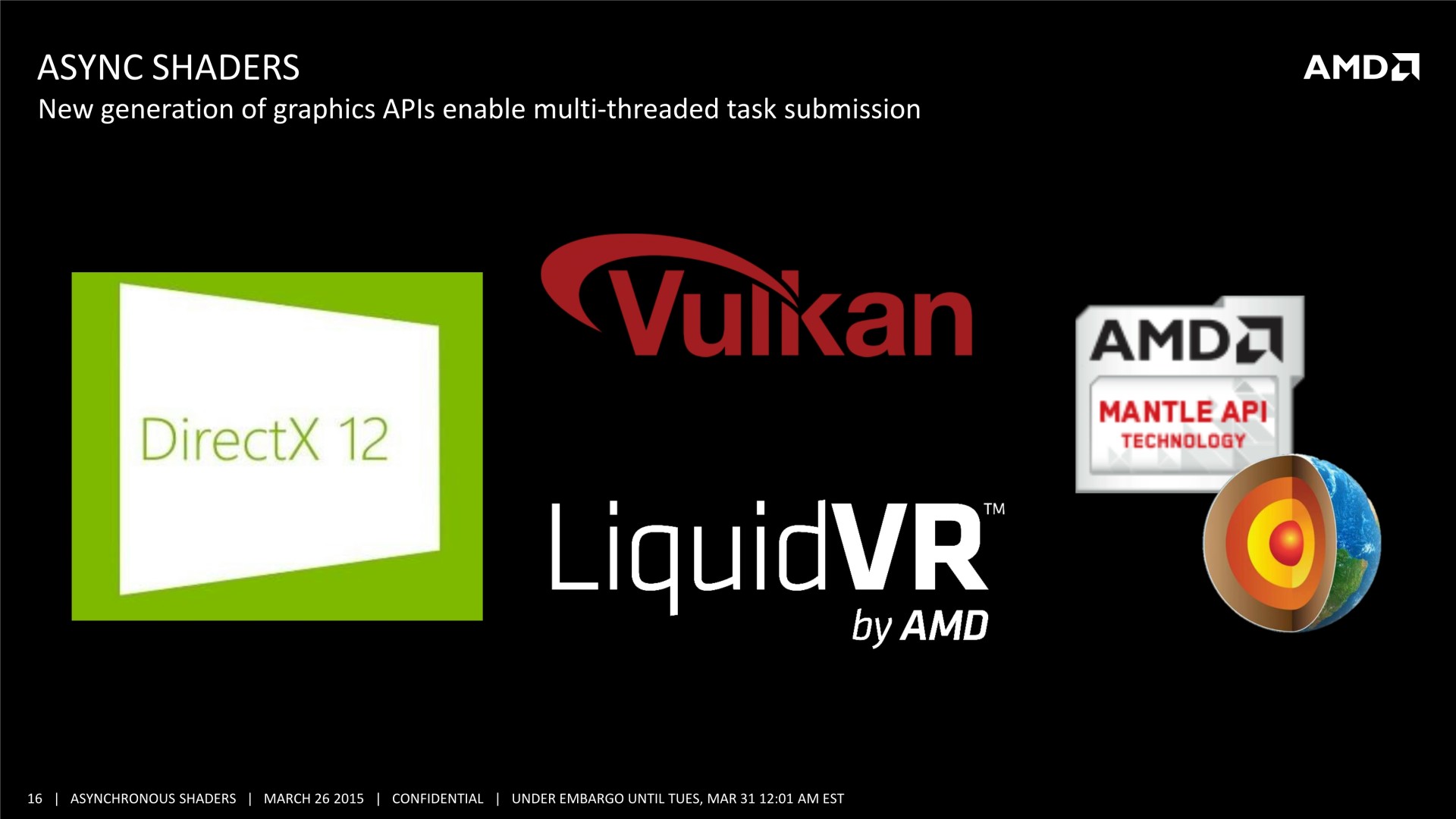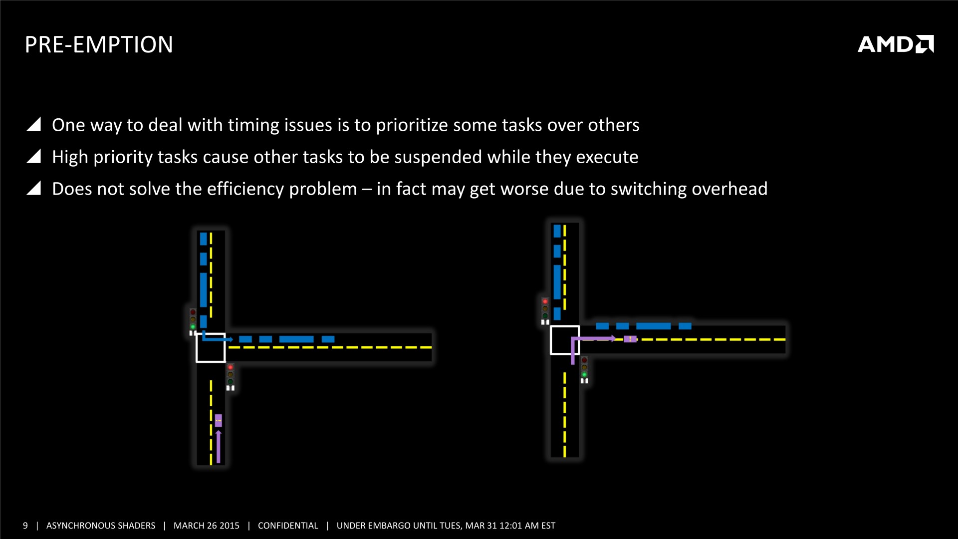 En bas de page, nous avons mis à jour cette actualité initialement publiée le 16 mars. AMD nous a transmis une nouvelle présentation sur le sujet et Nvidia nous a précisé ce dont étaient également capables ses GPU en terme de traitement simultané des tâches.