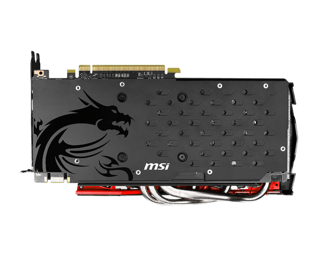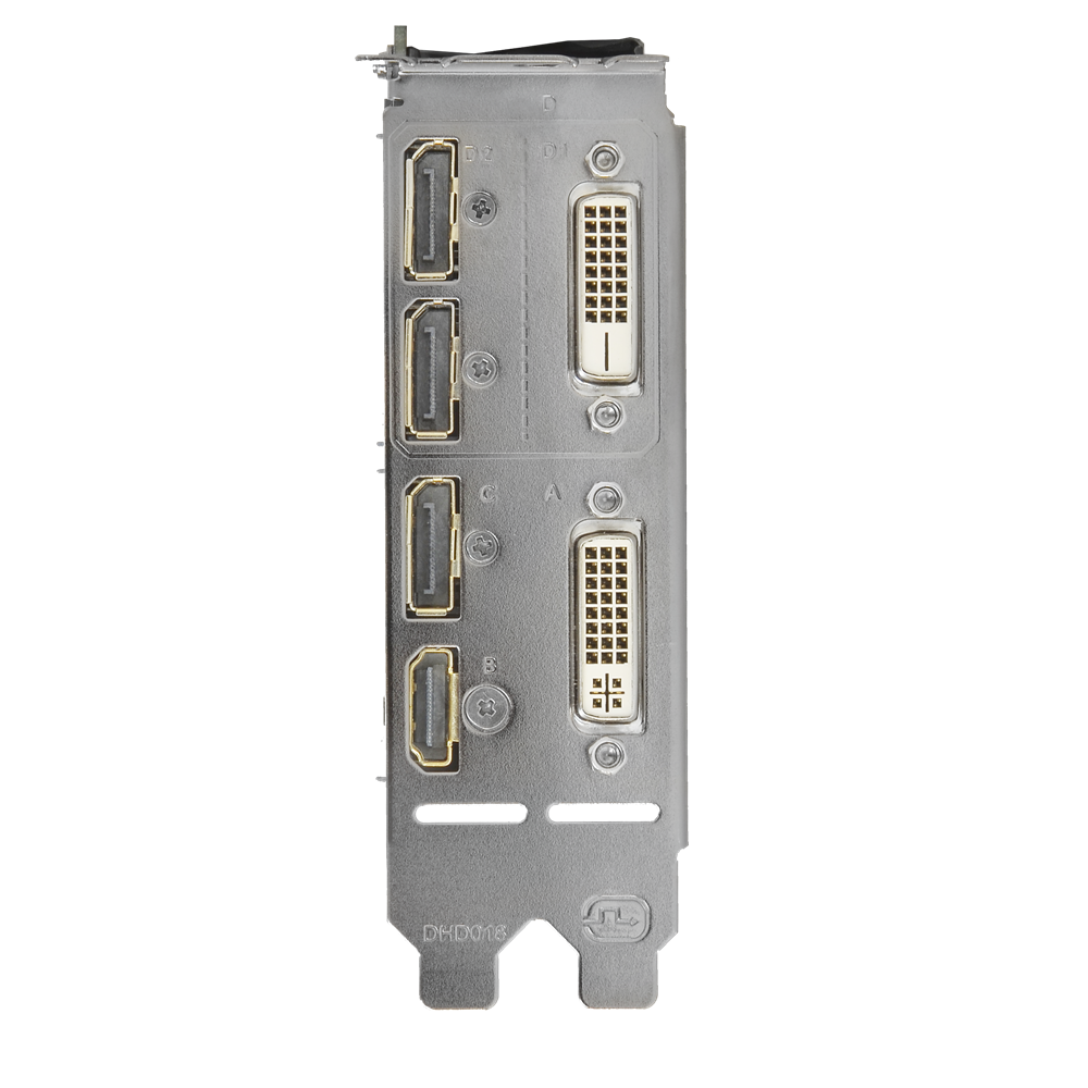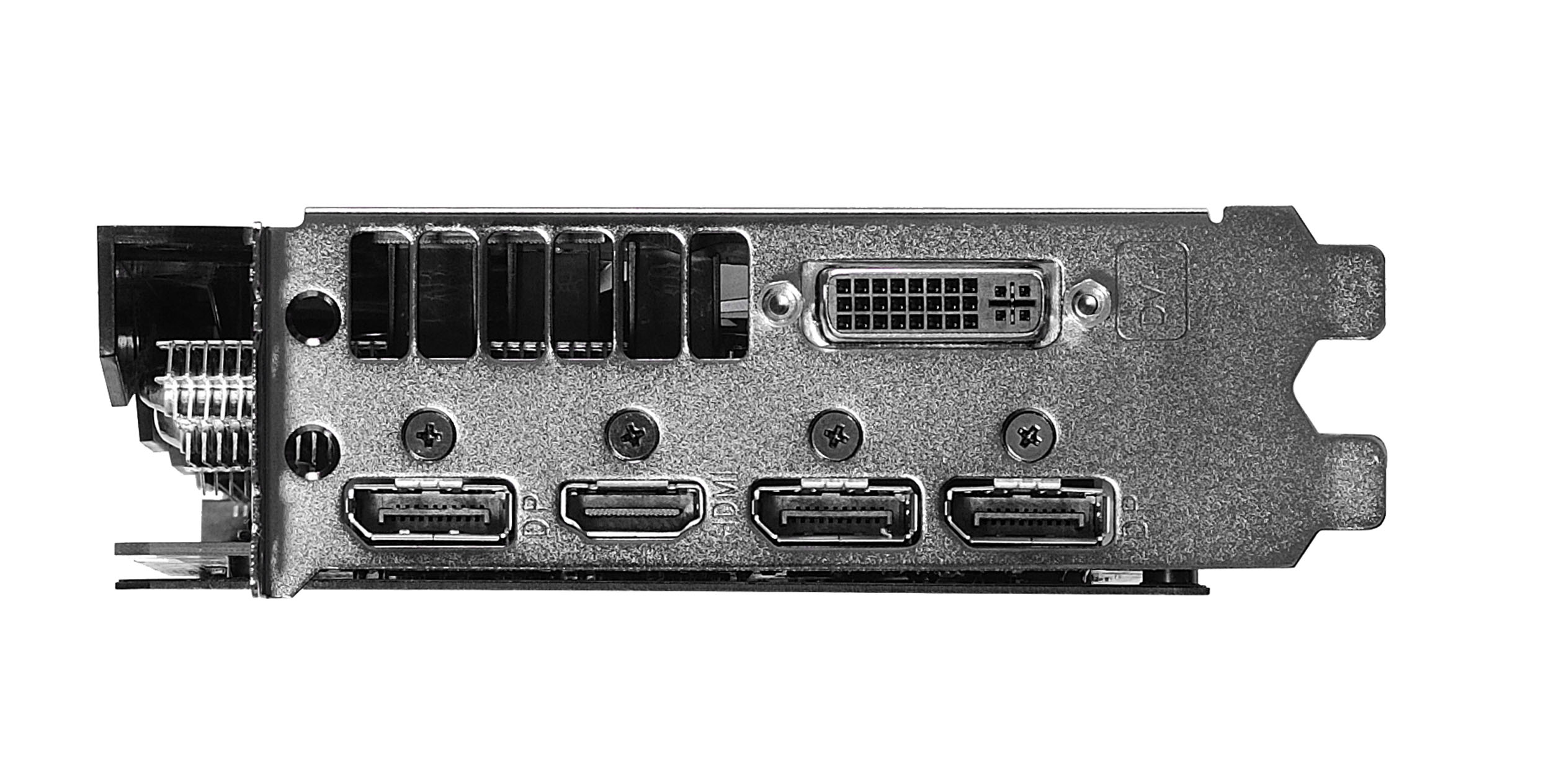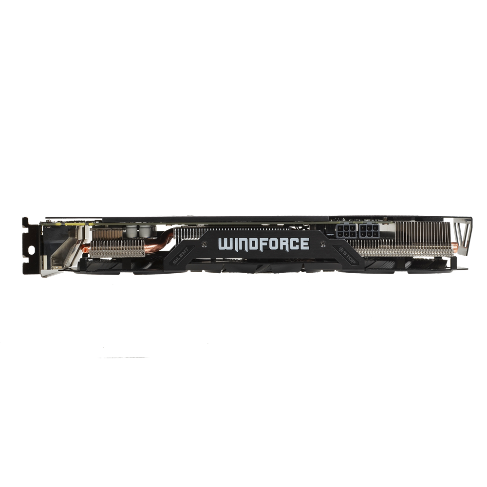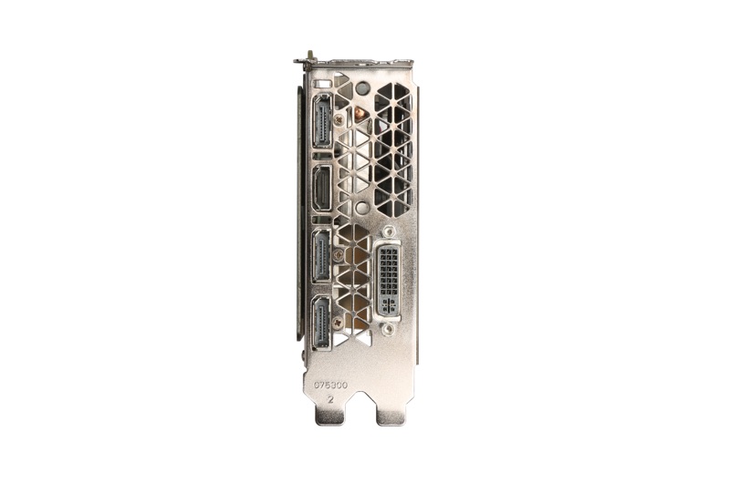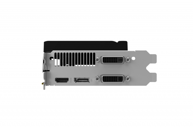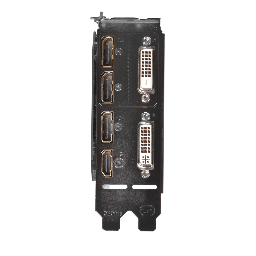 Côté fréquence on notera un léger overclocking du GPU avec 1088/1228 MHz par défaut au lieu de 1050/1178 MHz. La carte est alimentée par un connecteur PCIe 8 pins et propose de multiples sorties vidéos : DVI-I, DVI-D, HDMI 2.0 et DisplayPort 1.2. Si dans les deux cas un maximum de 4 écrans peuvent être utilisés en simultané, la carte Gigabyte propose 2 sorties DP supplémentaires.