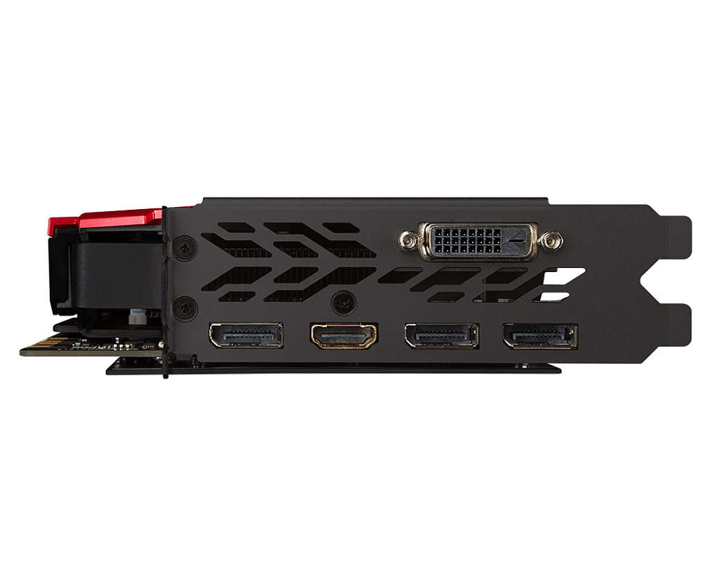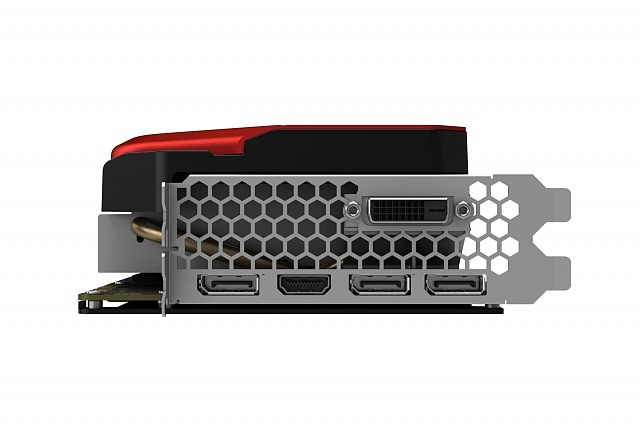 Le système de refroidissement est composé d'un double radiateur surplombé par deux ventilateurs, le système s'étalant en hauteur, condamnant trois slots. Une version classique , GS (Golden Sample) et GS-GLH (Golden Sample Goes Like Hell). Ils se différencient par la fréquence Turbo annoncée, de 1733 MHz pour le modèle classique, et de 1847 MHz pour les deux autres. Aucune information de prix/disponibilité n'est pour l'instant indiquée.