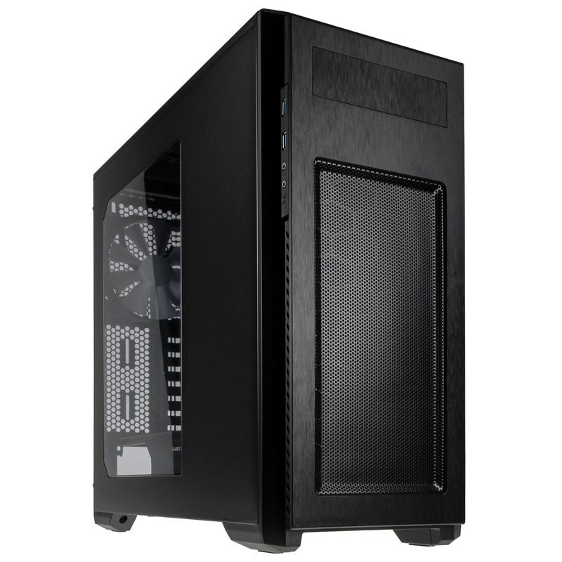 Après son modèle haut de gamme Primo et un modèle ITX, la marque Phanteks, plutôt connue pour ses ventirads, continue d'étendre sa gamme de boitiers avec cet Enthoo Pro M. De type moyen tour, il mesure 235 x 480 x 500 mm (L x H x P) pour un poids de 7.4 kg. A l'intérieur on pourra fixer une carte mère ATX, voir une E-ATX courte puisqu'il autorise jusqu'à 26.4 cm de largeur pour la carte mère (pour rappel, l'ATX est à 24.4 et l'E-ATX pleine taille à 33 cm). Côté stockage par défaut on pourra fixer deux disques durs 3.5 pouces dans le bas du boitier, fixés dans des cages amovibles dans le sens de la largeur, ainsi qu'un slot 2.5 pouces. Au total le boitier accepte (via l'ajout de cages supplémentaires) huit disques 3.5 pouces et trois disques 2.5 pouces.