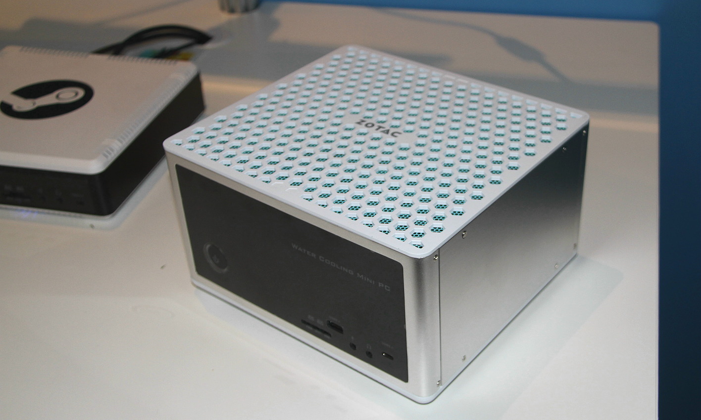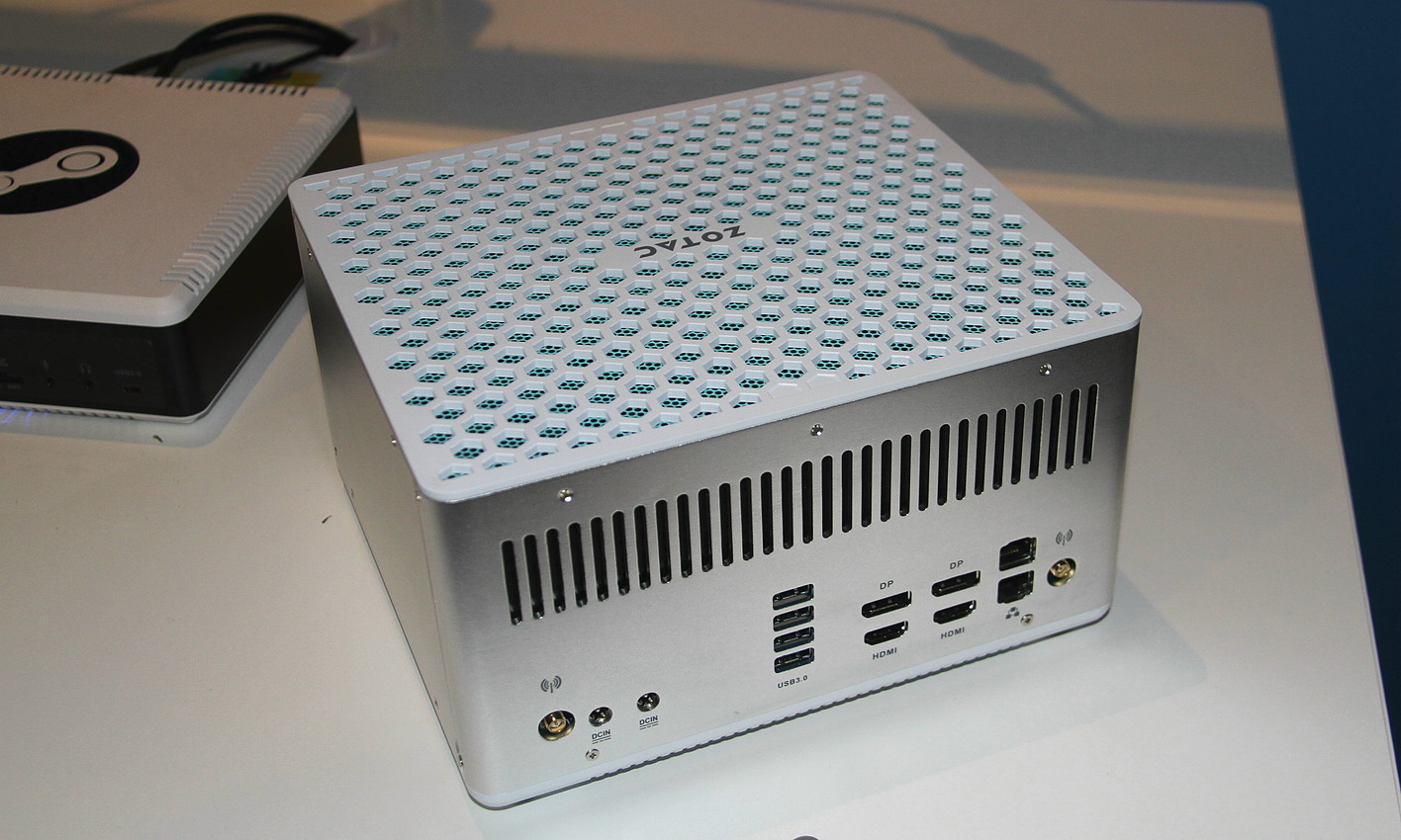Zotac était présent à la GDC sur le stand de Valve pour exposer sa Steam Machine, mais également pour présenter un prototype du MAGNUS EN980, son futur mini-PC haut de gamme. Plus volumineux que les autres mini-PC de la marque (+/- 22x20x13cm), il est également bien plus véloce, notamment pour pouvoir prendre en charge la VR.