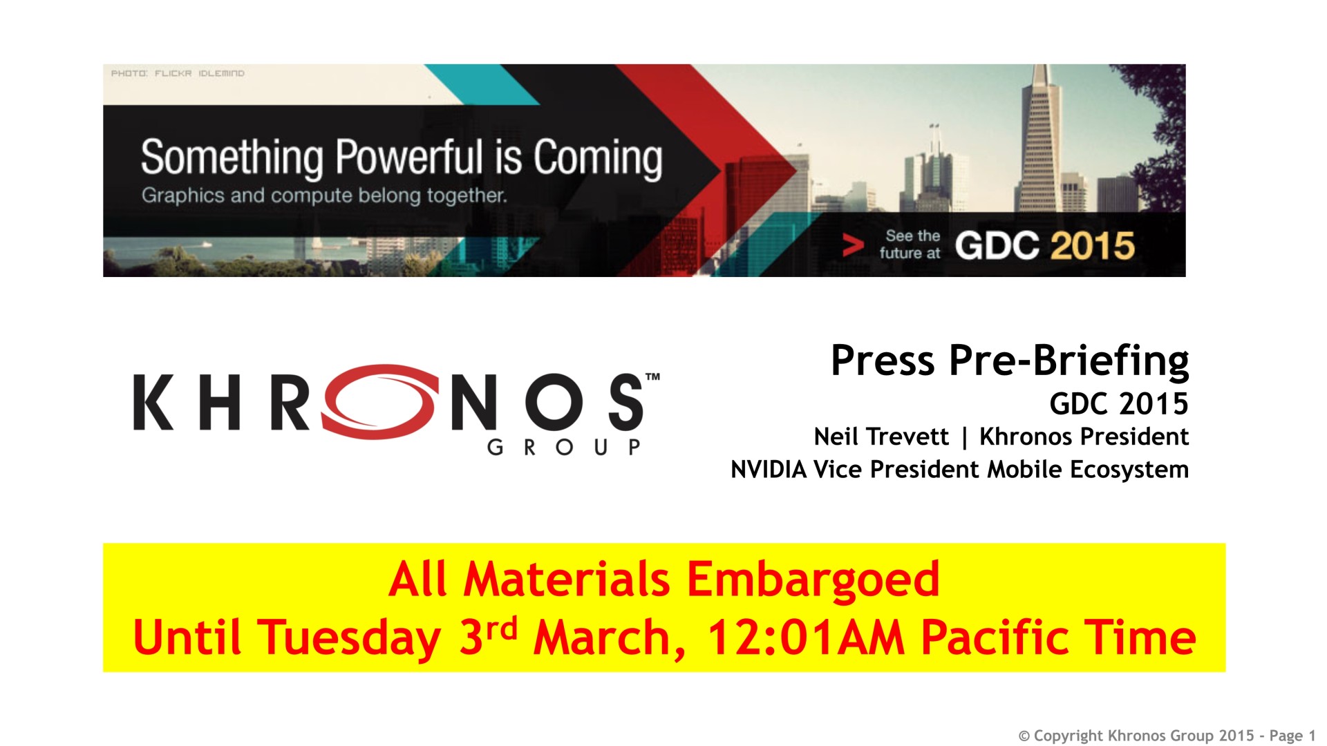 La semaine passée, nous avons pu nous entretenir brièvement avec Neil Trevett, Président de Khronos et Vice Président de l'écosystème mobile chez Nvidia, au sujet de Vulkan. Ce dernier nous a tout d'abord indiqué que de nombreux détails sont toujours en train d'être définis telles que l'implémentation exacte au niveau des pilotes et des OS.