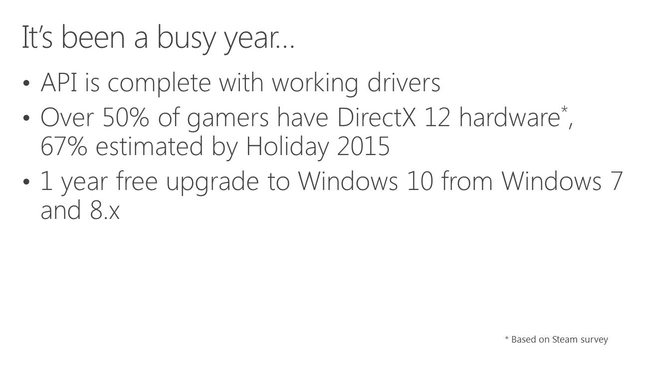 Microsoft avait réservé pour sa conférence Build 2015 les détails concernant une énième nouvelle fonctionnalité de Direct3D 12 : le support explicite du multi-GPU. Il ouvre en théorie la voie aux combinaisons de tous types de GPU, y compris de marques différentes, mais la pratique ne sera pas aussi simple.