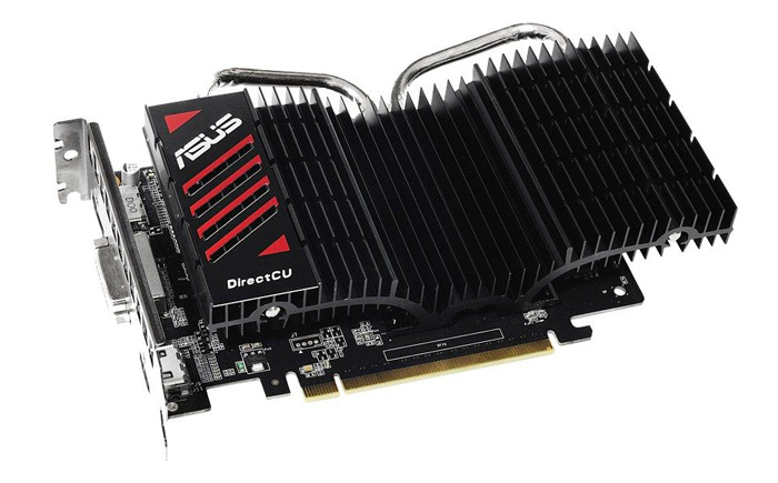 Après Palit et Zotac, c'est au tour d'ASUS de lancer une GeForce GTX 750 fanless, la GTX750-DCSL-2GD5. Elle utilise un radiateur en aluminium associé à deux caloducs en cuivre qui sont en contact direct avec le GPU, un modèle qui avait déjà été utilisé par ASUS sur HD 7750 par exemple.